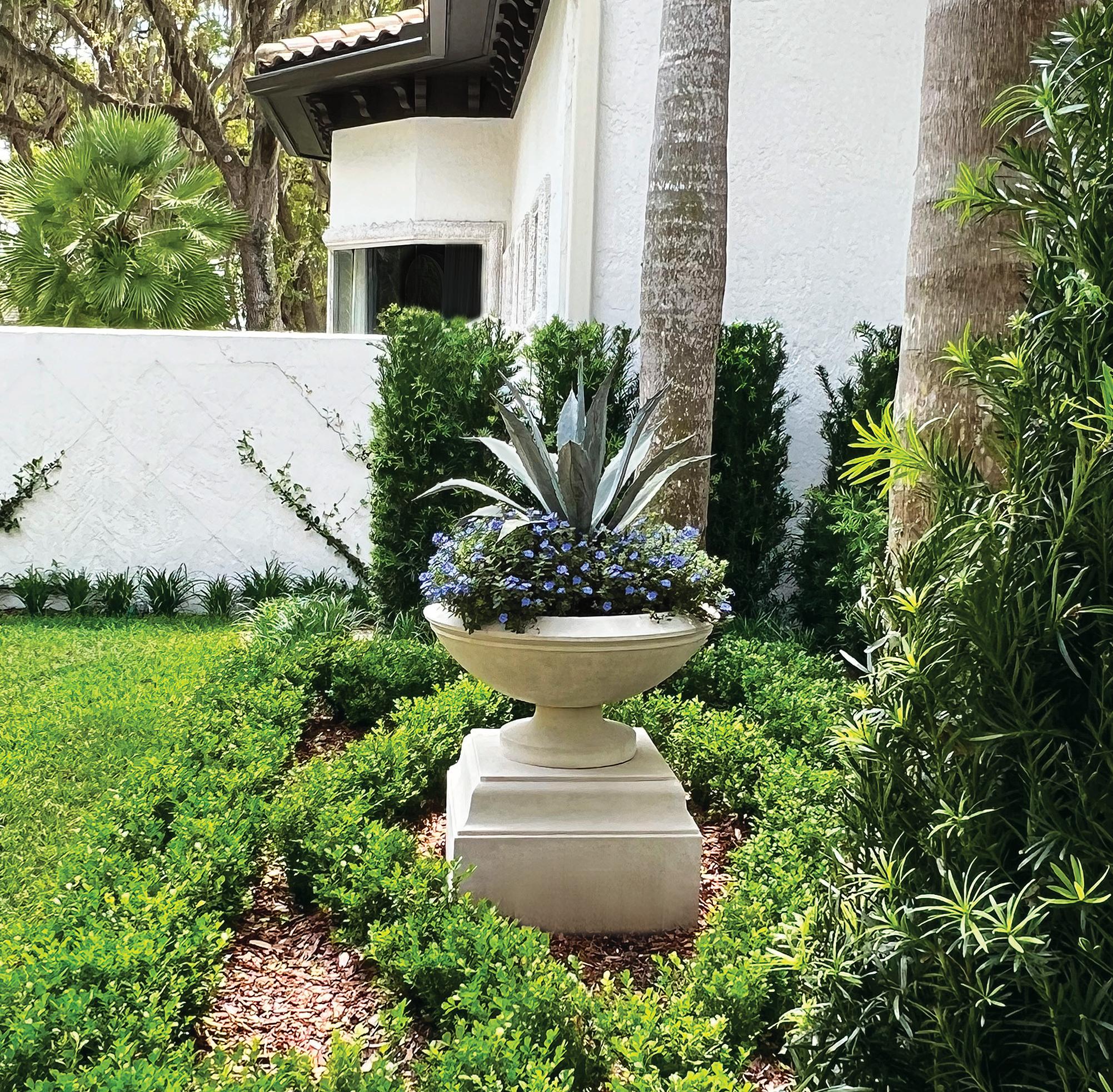 ThisNorth Shore estate’s garden was transformed to complement the home’s newly painted exterior. A garden wall with wrought iron toppers creates a seamless connection between the architecture and landscape. A large, declining maple tree was replaced by a birch grove. Lush beds add texture and seasonal