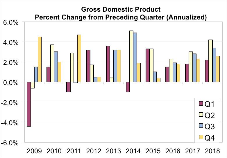 The US general economy has shown strong performance lately. Gross domestic product (GDP) growth for 2018 was 2.9 percent, a healthy rate for a developed economy such as ours, and significantly higher than 2017’s 2.2 percent growth. One consequence of this economic growth has been a tightening labor market. The US added more than 2.6 million jobs over the course of 2018, and unemployment fell to below 4 percent, a level many economists consider full employment.