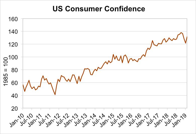 Consumer confidence in the economy has been strong, which in turn has led to robust consumer spending. As seen below, US consumer confidence has pretty much steadily increased since 2010, reflecting the general economy.