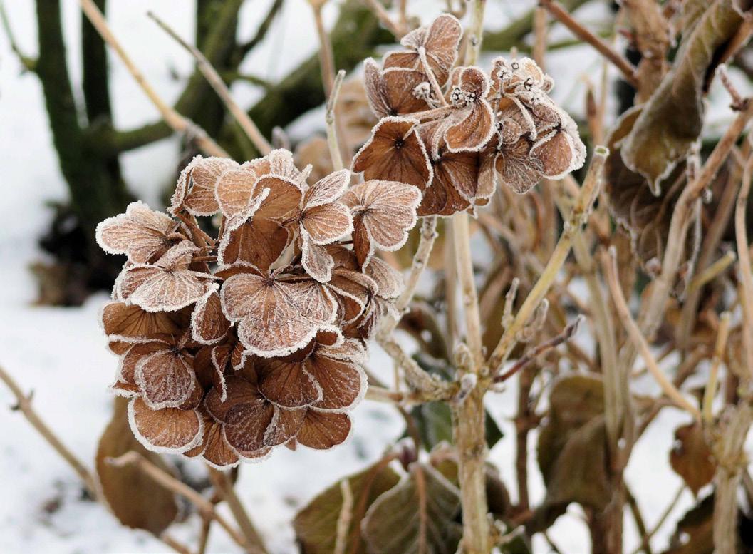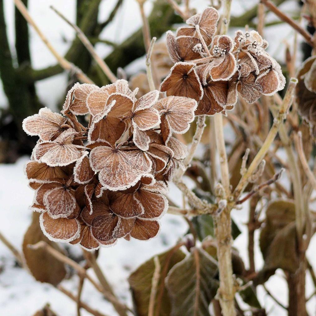 Gardening in a cold climate always presents the challenge of what to add for winter interest. This is where hydrangeas can be a real asset if you leave the spent flowers on your plants. Wildlife continues to feed on those flowerheads. The flowerheads also provide a measure of protection, albeit small, for sleeping buds farther down the stem.