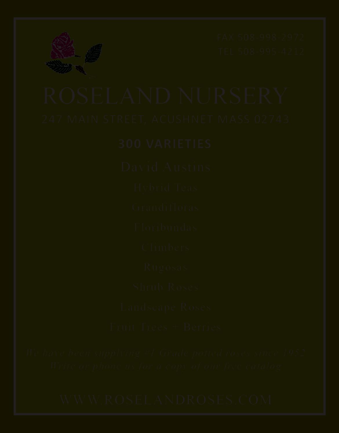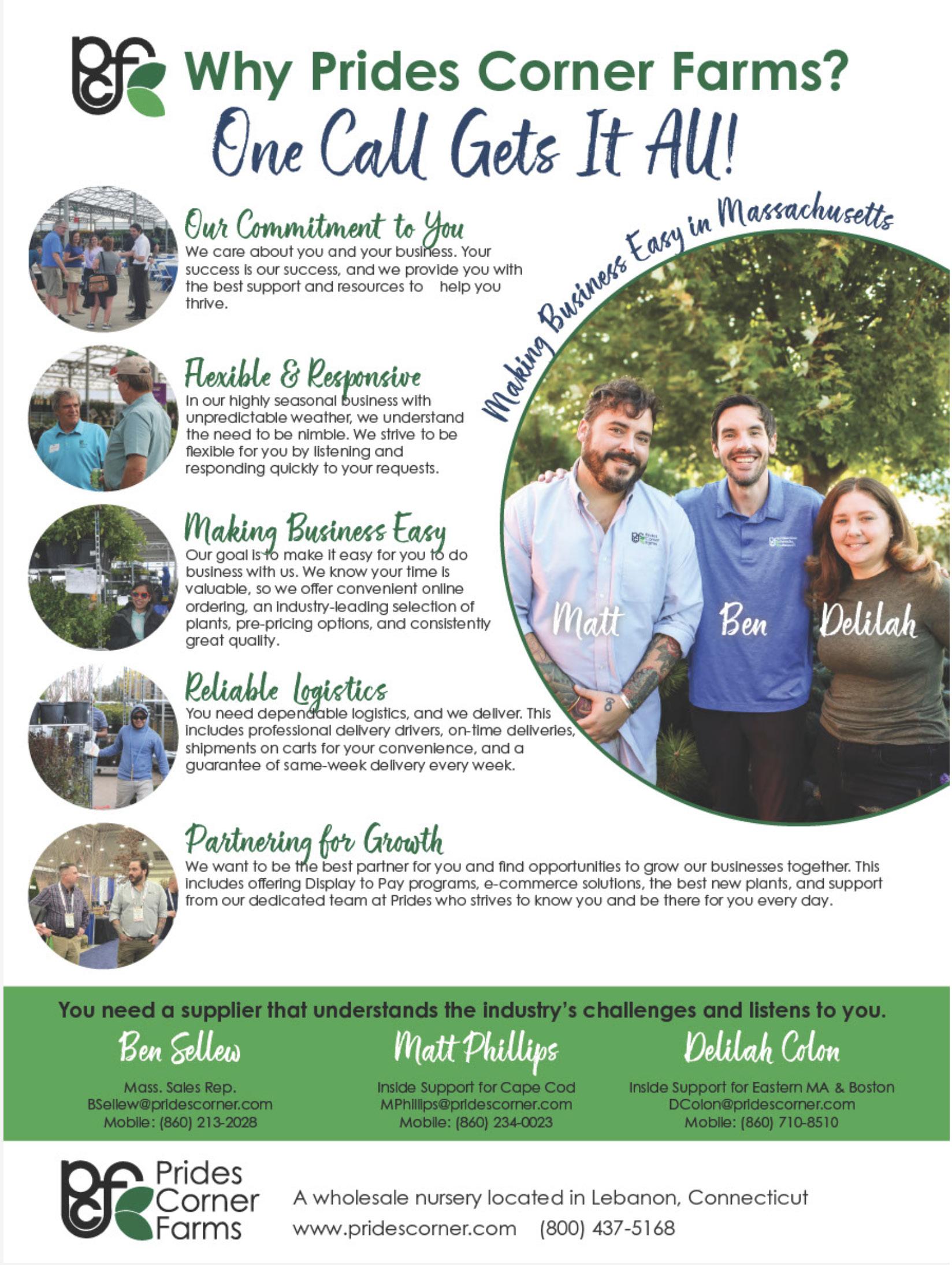 ProGrowNews is published quarterly by the Massachusetts Nursery & Landscape Association (MNLA), P.O. Box 924, Palmer, MA 01341, tel. (413) 369-4731. Articles do not necessarily reflect the view or position of MNLA. Editorial coverage or permission to advertise does not constitute endorsement of the company covered or of an advertiser’s products or services, nor does ProGrowNews make any claims or guarantees as to the accuracy or validity of the advertiser’s offer. (c) 2014 All rights reserved. No part of this publication may be reproduced in print or electronically without the express written permission of the MNLA.