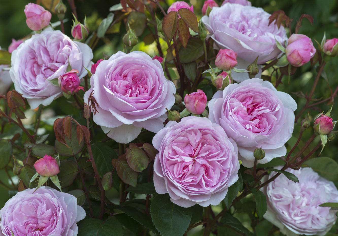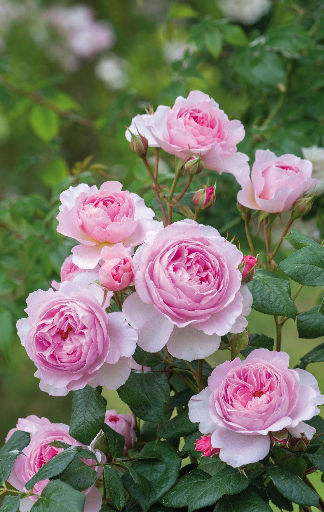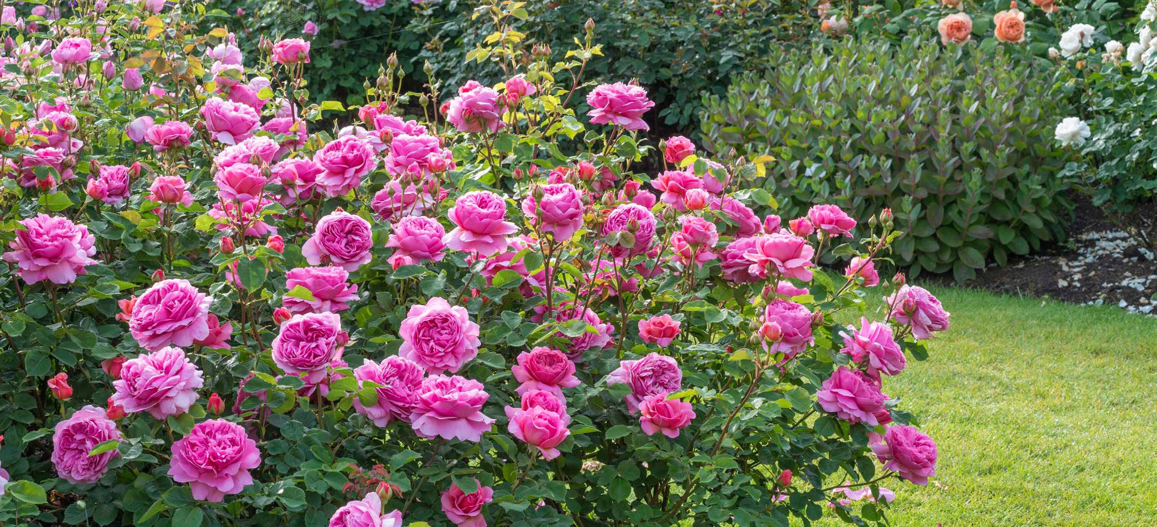 ers, and pruning in late winter/early spring when the first growth is just beginning will create shapely, attractive shrubs with good structure. Fertilize in spring and again after the first flush of flowers. The petals will drop cleanly, but deadheading spent flowers does encourage quicker rebloom. Spraying is not necessary, as these roses suffer very little from disease. Michael Marriott, technical director of David Austin Roses, believes the more you look after the soil and minimize the use of sprays, the happier the roses will be.