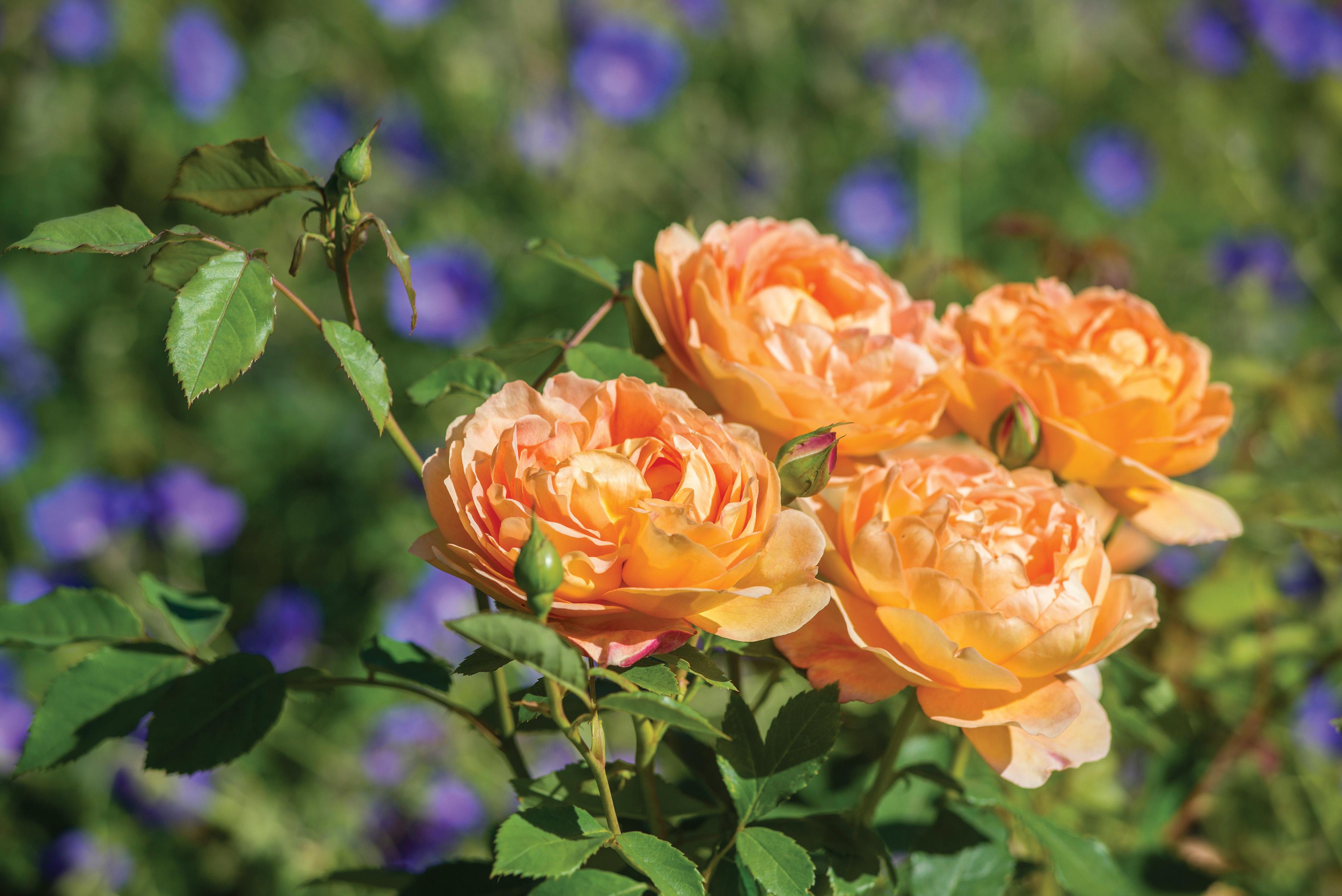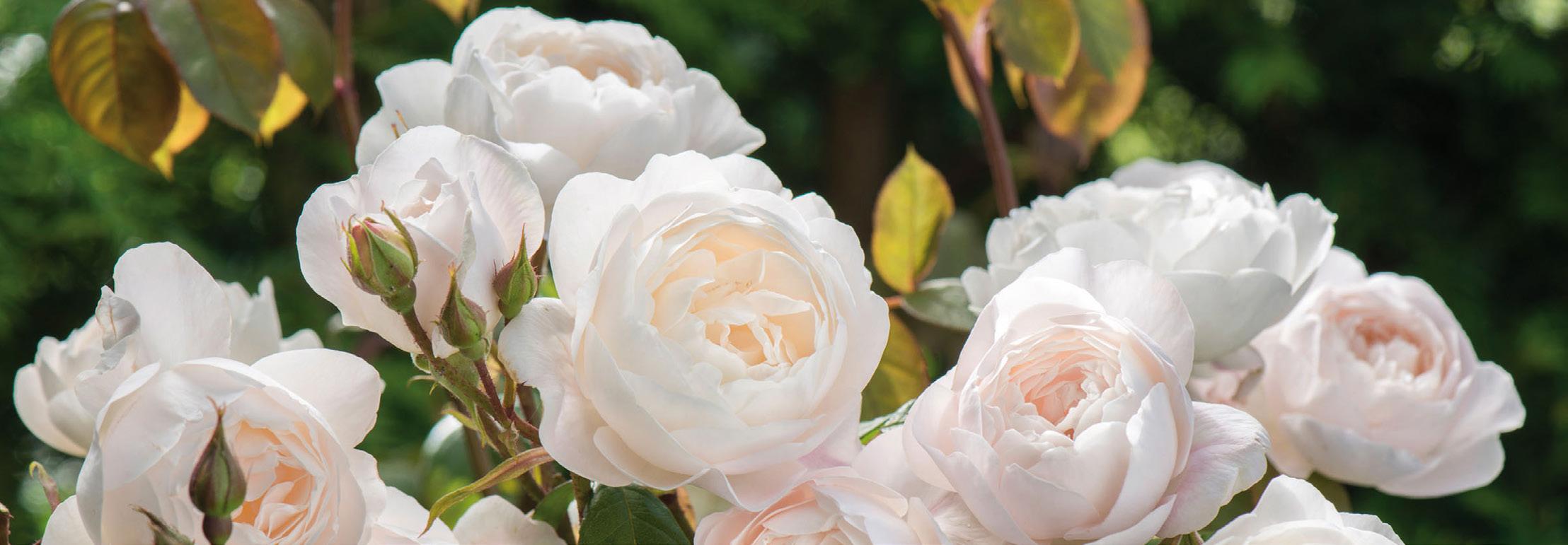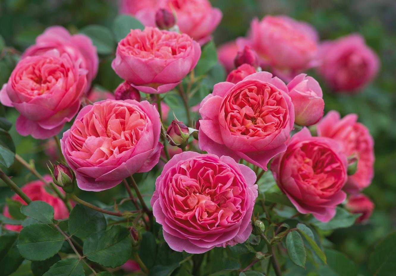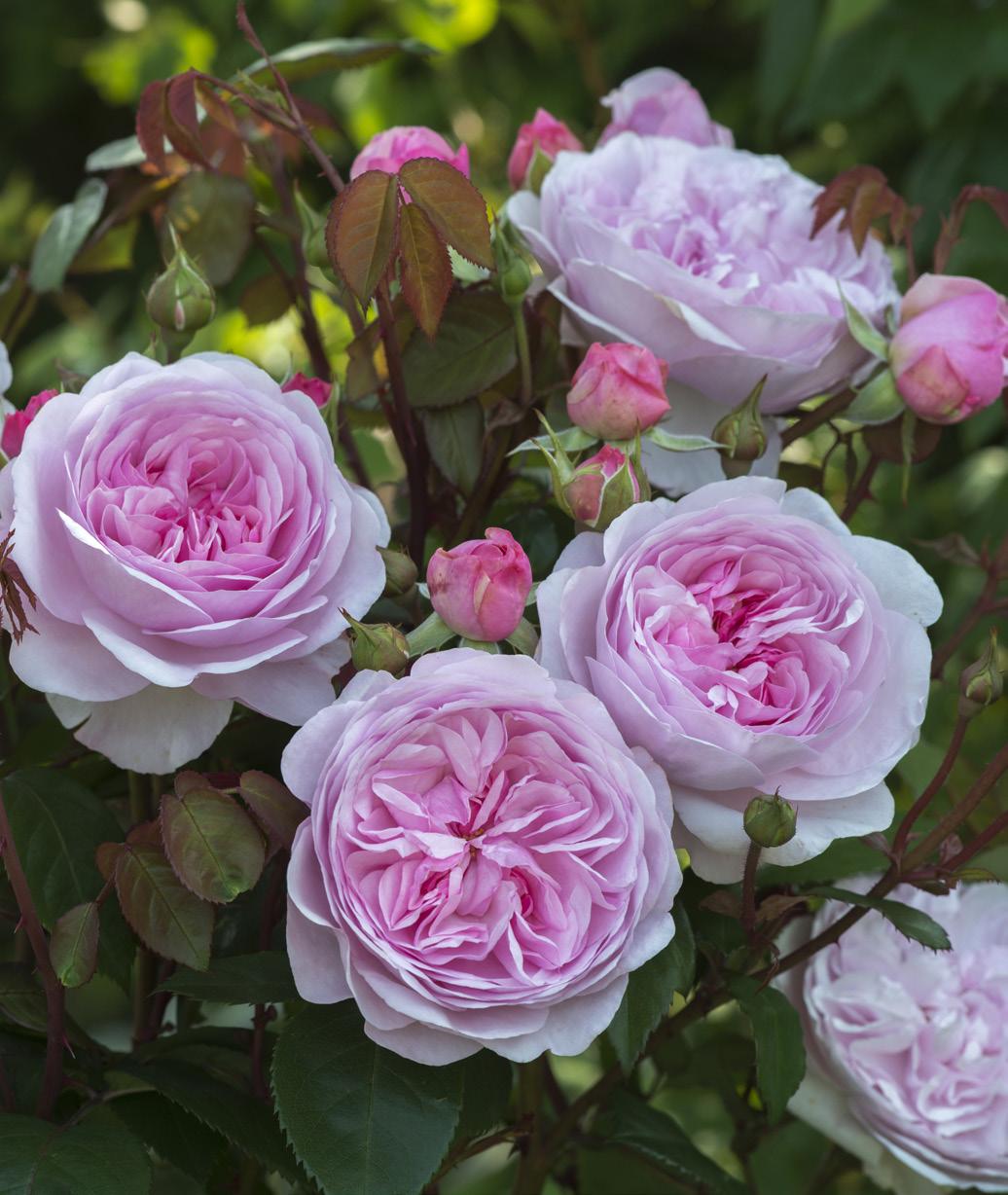 ers, and pruning in late winter/early spring when the first growth is just beginning will create shapely, attractive shrubs with good structure. Fertilize in spring and again after the first flush of flowers. The petals will drop cleanly, but deadheading spent flowers does encourage quicker rebloom. Spraying is not necessary, as these roses suffer very little from disease. Michael Marriott, technical director of David Austin Roses, believes the more you look after the soil and minimize the use of sprays, the happier the roses will be.