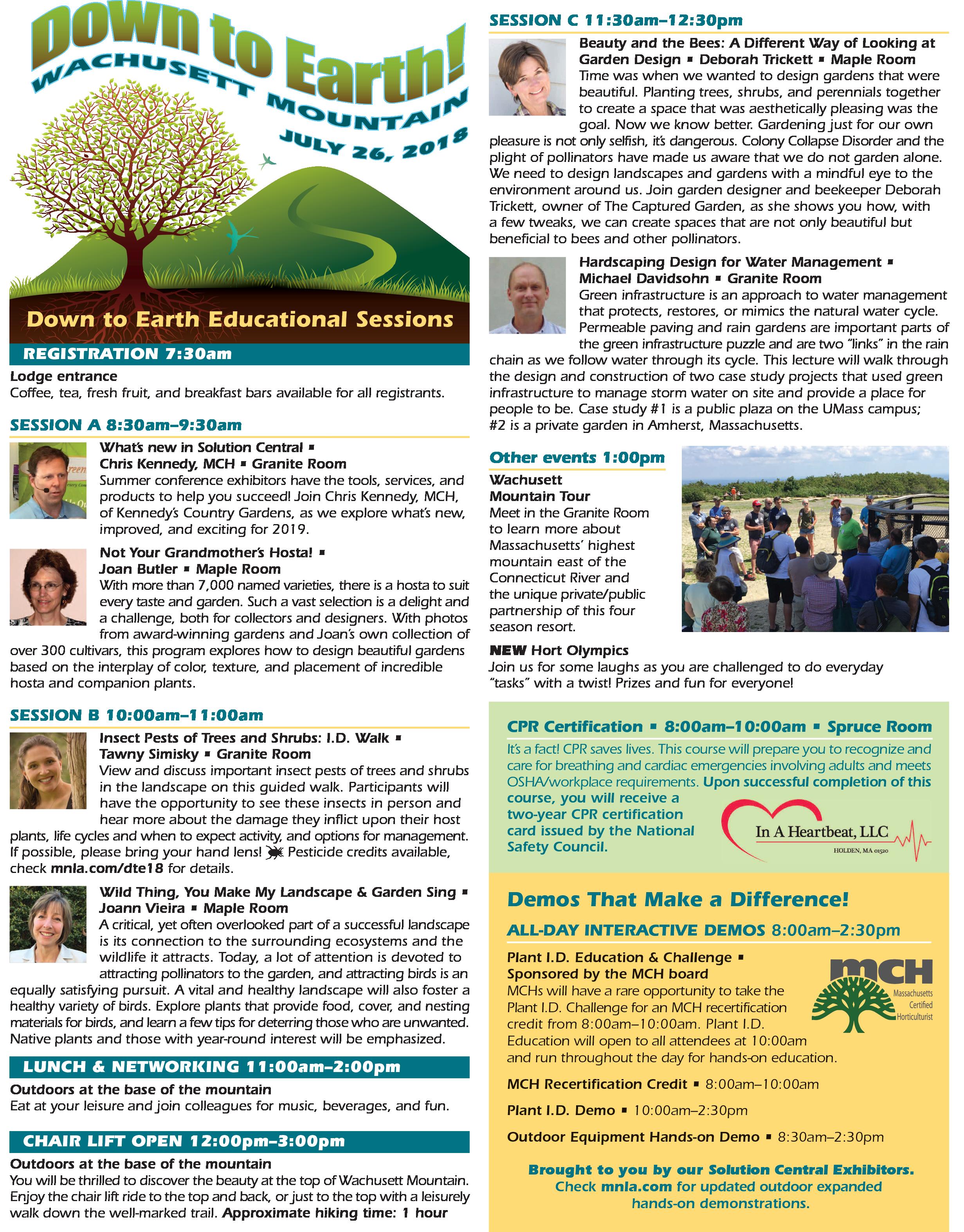 On Thursday, July 26, take part in MNLA’s Down to Earth Annual Summer Conference and Trade Show. This year, it is again being held at Wachusett Mountain in Westminster, Massachusetts. Last year was a rousing success. MCHs can earn a recertification credit at the Plant ID Challenge from 8am to 10am. The ID challenge will continue after 10am for those who want to participate for fun and discuss recognition techniques with MCH board members. This is also an opportunity for those taking the exam in August to get experience on Plant ID.