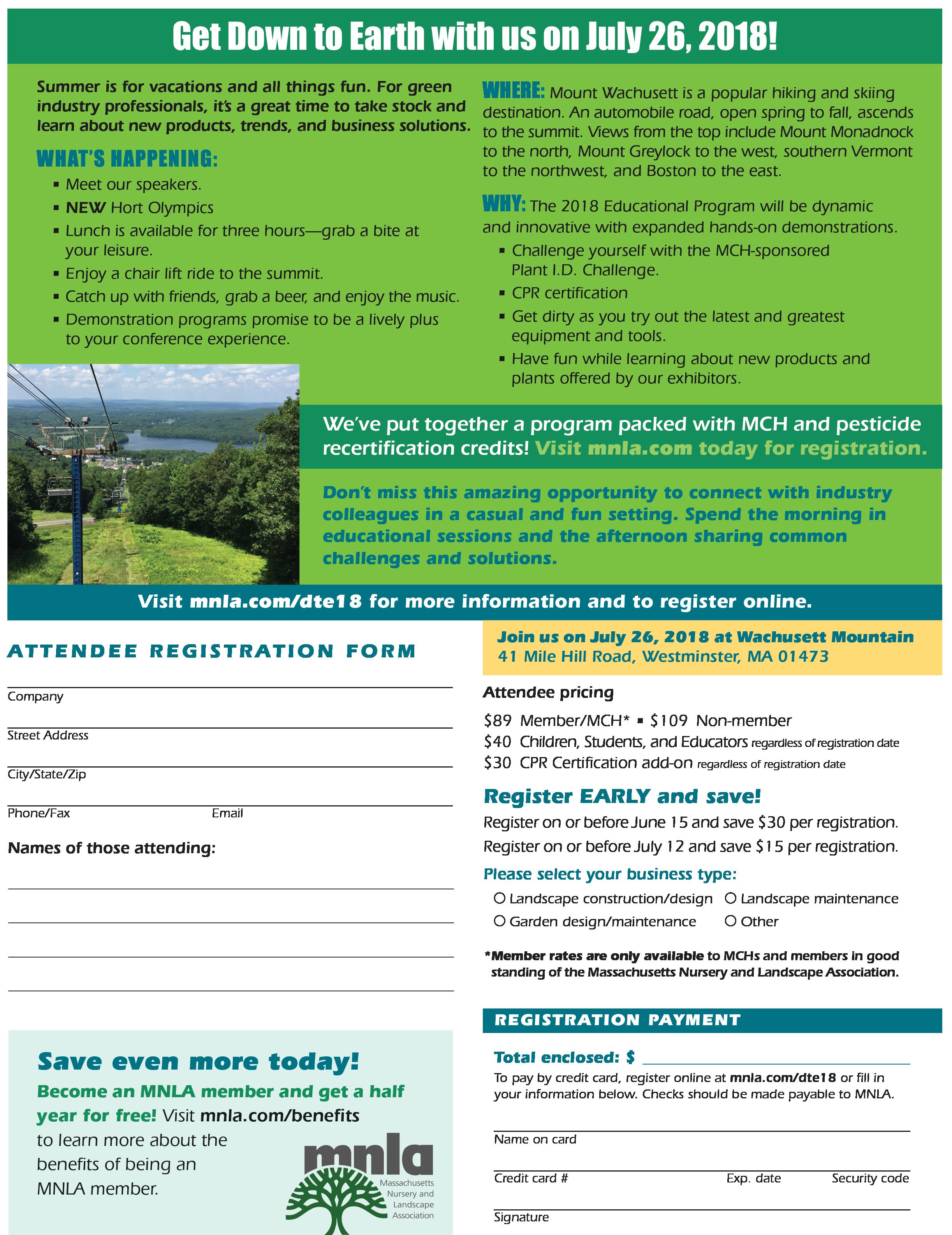 However, we all seem to have fewer employees, and the new ones — although filled with enthusiasm and energy — are lacking horticultural knowledge. This creates a challenge, but MNLA can help with the perfect solution: Bring them along to the Down To Earth Summer Conference & Trade Show on Thursday, July 26, at Wachusett Mountain. This is where you can give them their start with all the education MNLA has to offer. I not only gained knowledge from the educational sessions and hands-on demonstrations at these