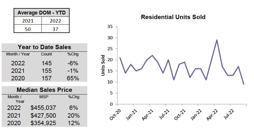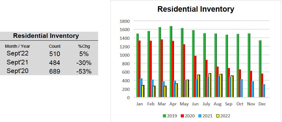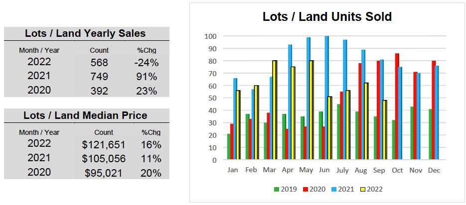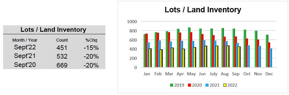 • Residential Sales are down 24% and Land Sales are also down 24% over September 2021!