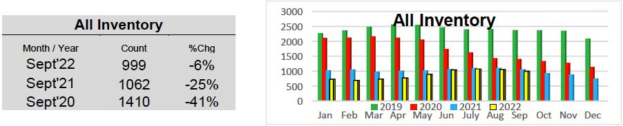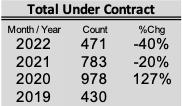 • Under Contract listings were at 471 as of October 1, 2022 and are down 40% over last year.