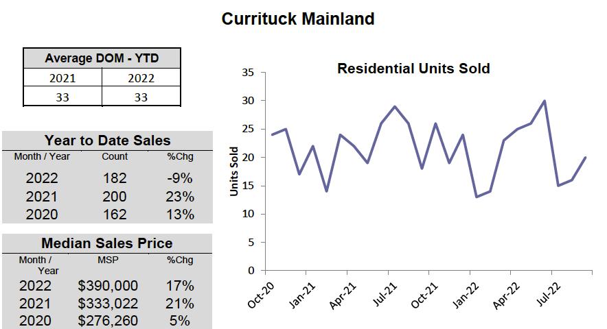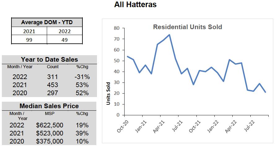 • There is still demand for OBX real estate but low inventory and increasing interest rates are continuing to impact sales