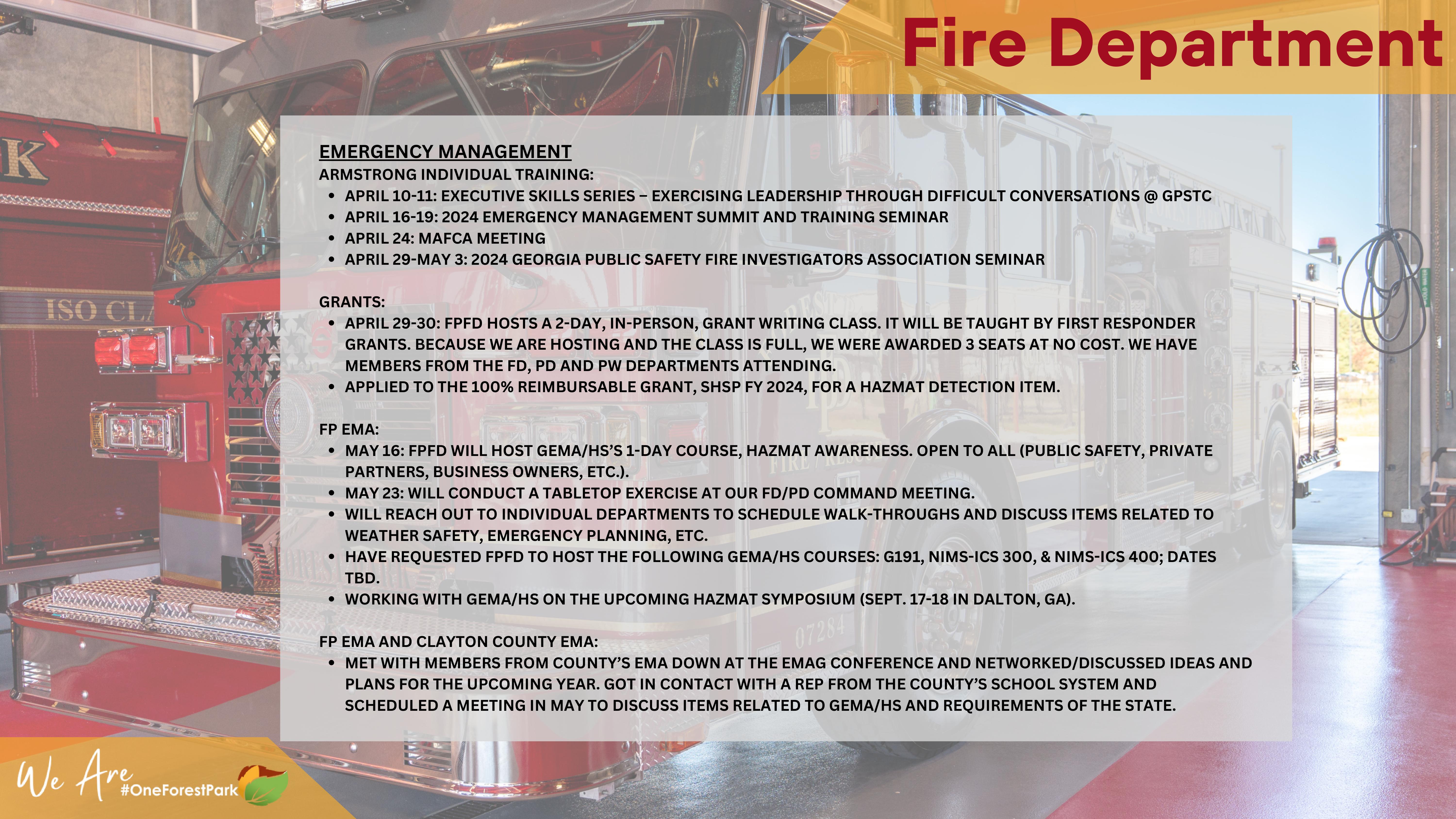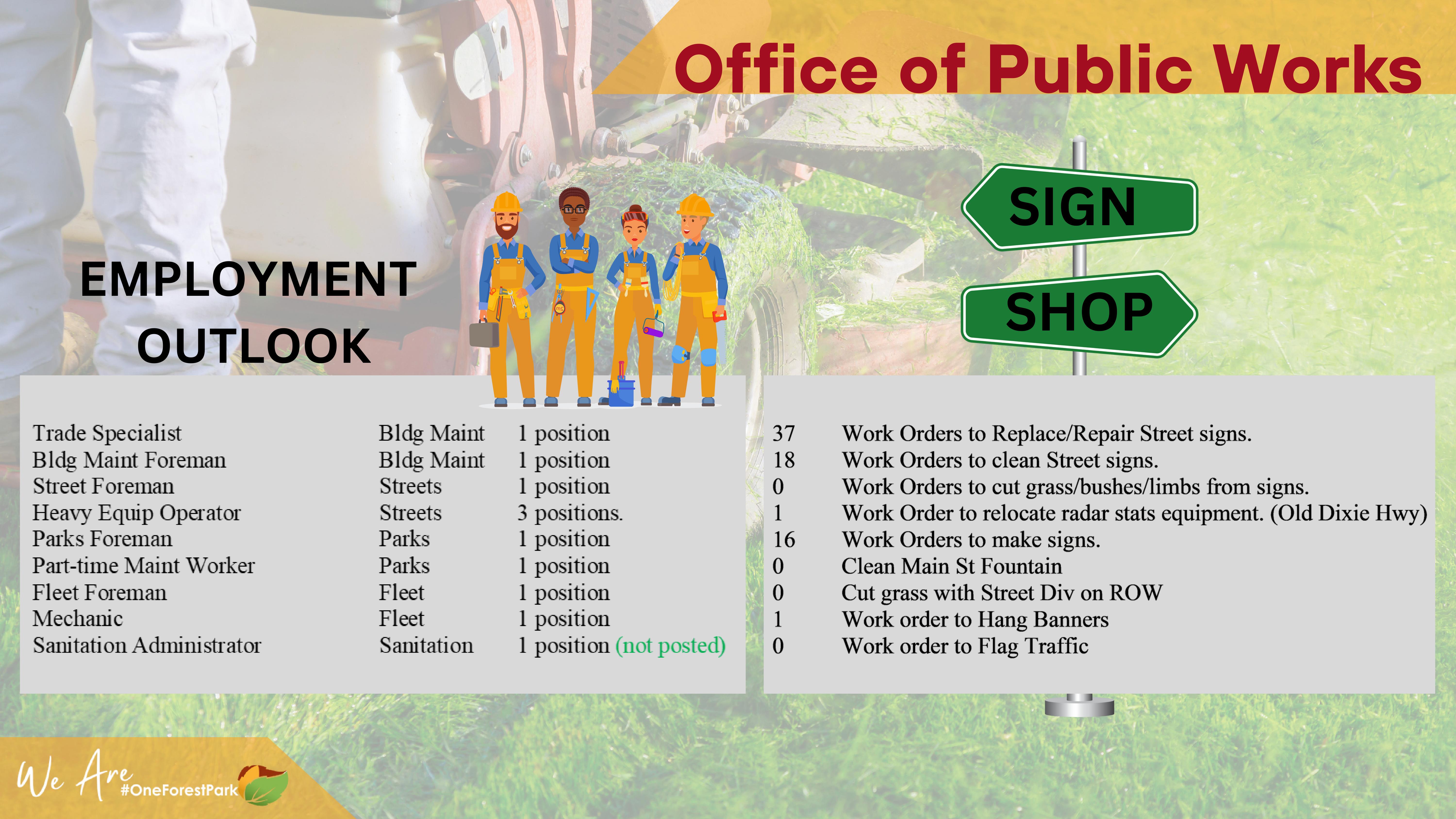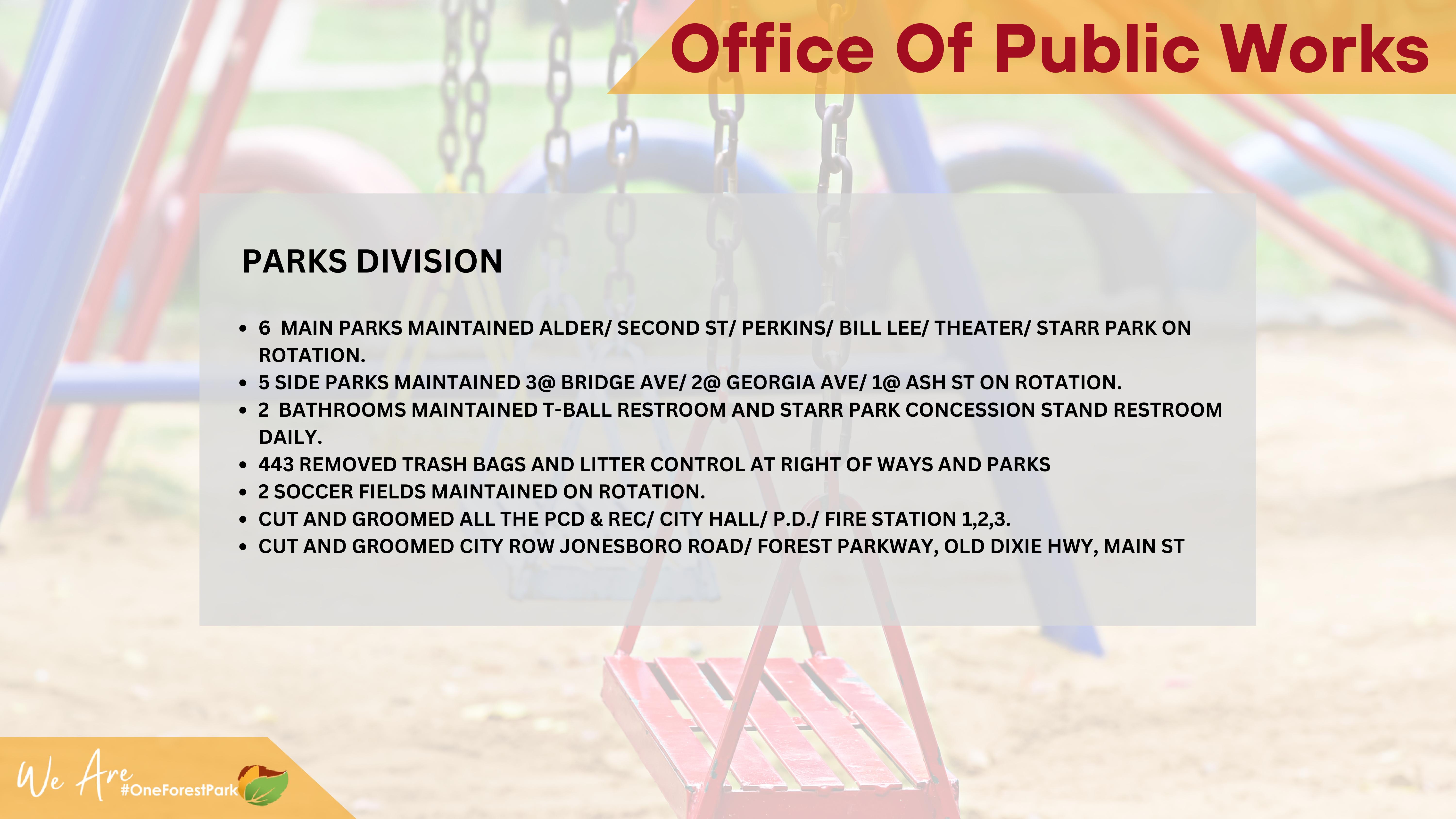 The City Manager's Office works cooperatively with all City Departments to prepare the Monthly Operations Report. The document was developed with the intent to create an additional communications tool highlighting the ongoing and seasonal activities of each department. The report intends to provide a "snapshot" of departmental operations and significant City activities monthly.