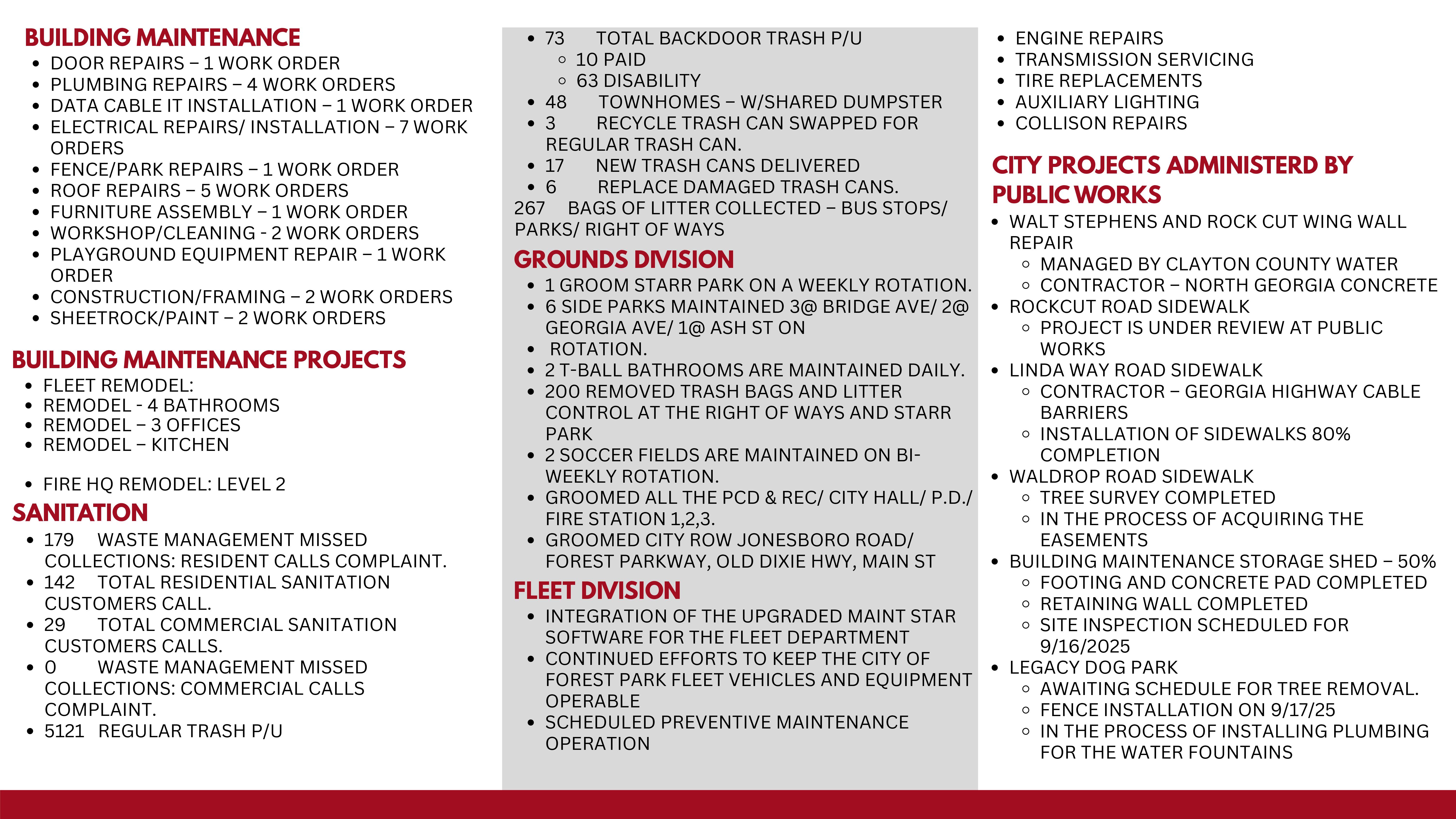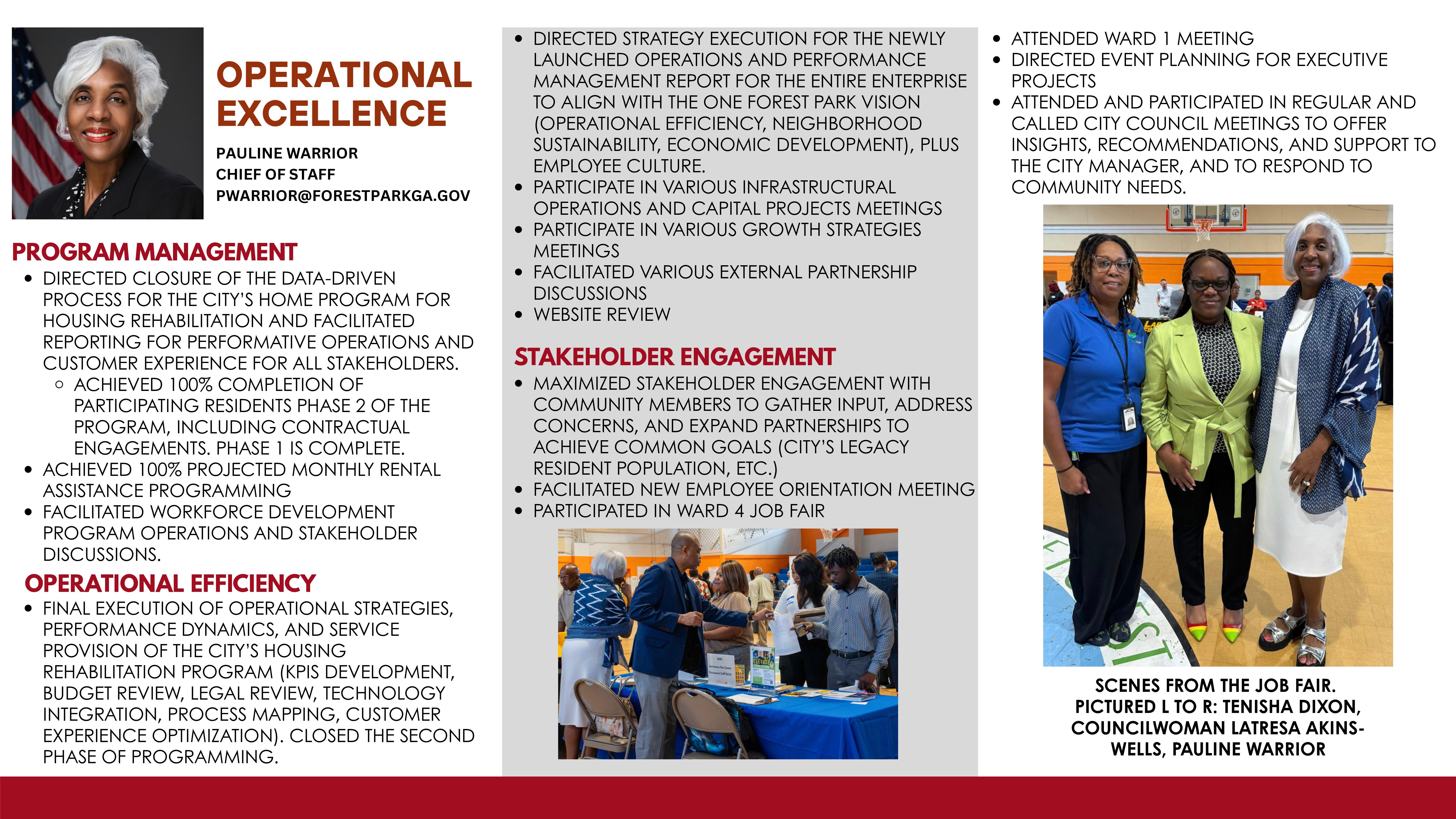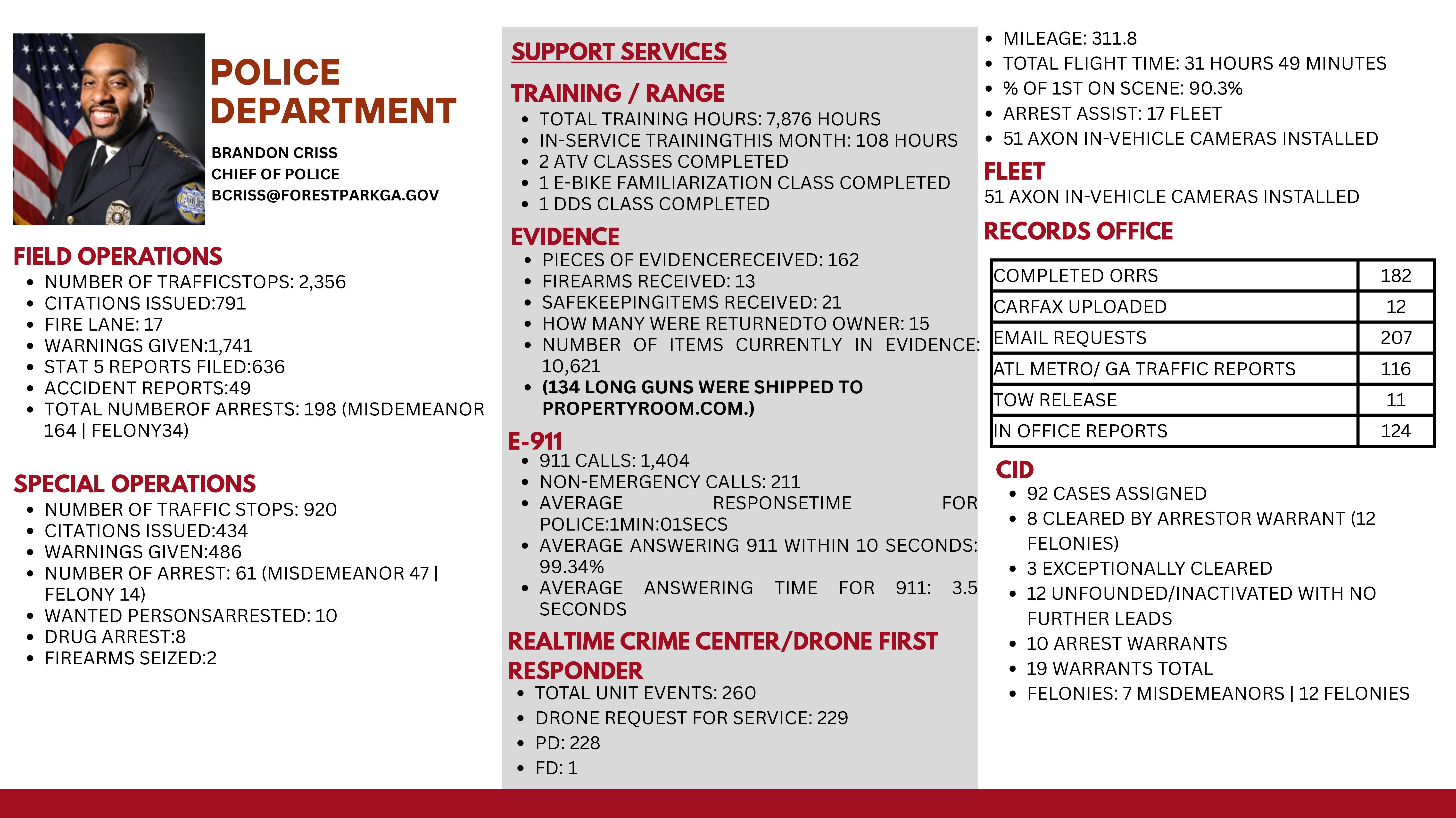 The City Manager's Office works cooperatively with all City Departments to prepare the Monthly Operations Report. The document was developed with the intent to create an additional communications tool highlighting the ongoing and seasonal activities of each department. The report intends to provide a "snapshot" of departmental operations and significant City activities monthly.
