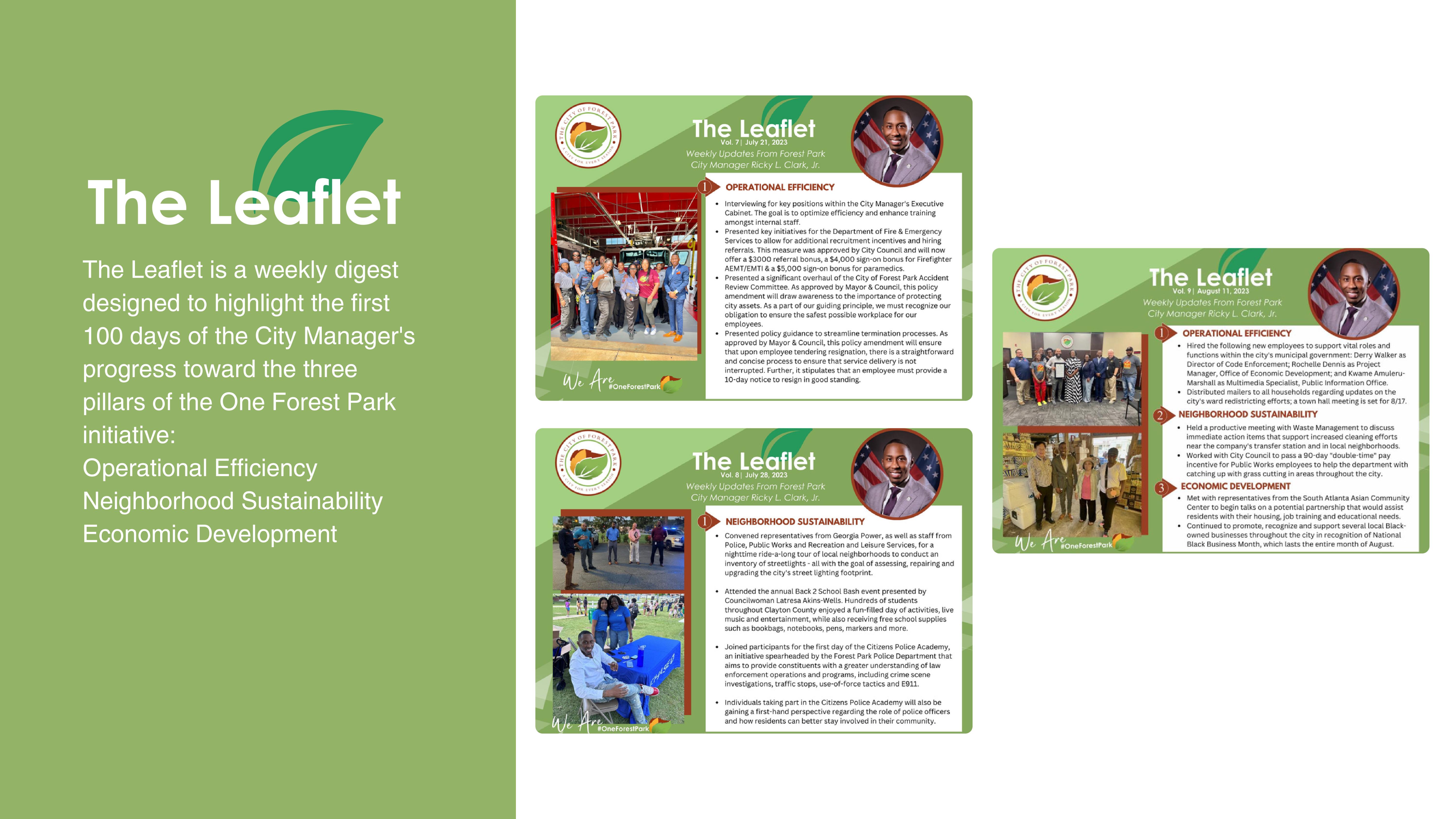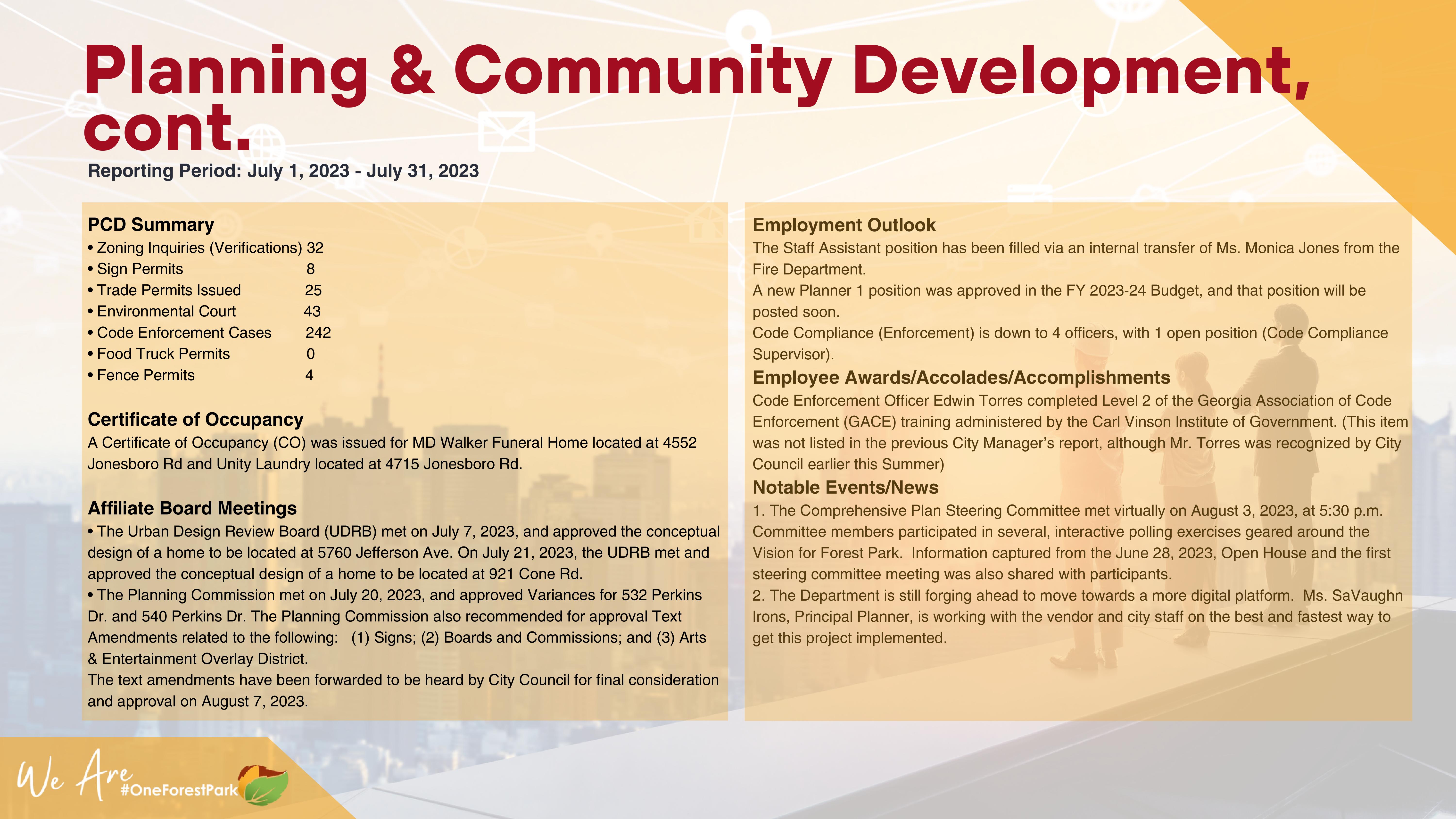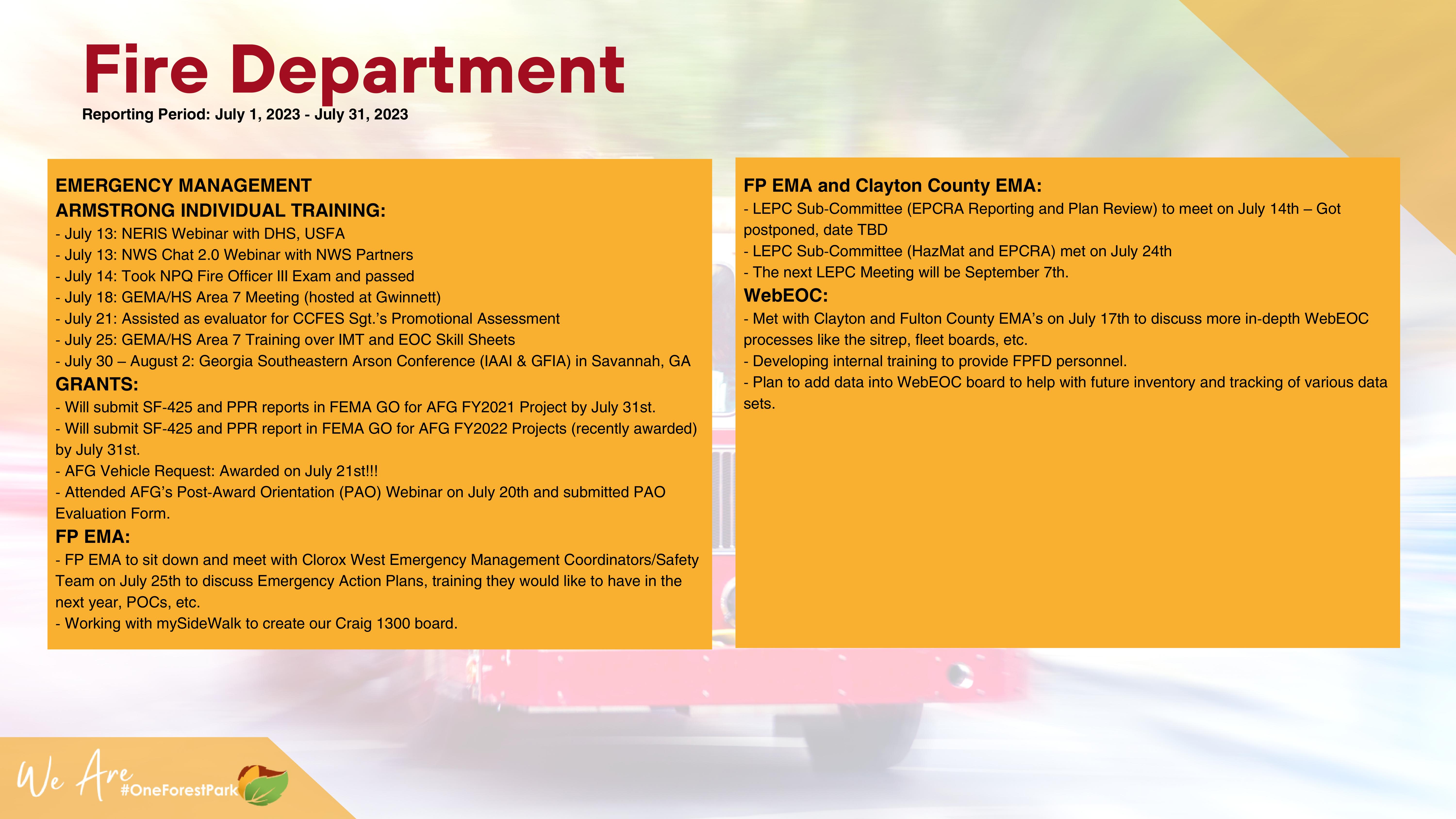 The City Manager's Office works cooperatively with all City Departments to prepare the Monthly Operations Report. The document was developed with the intent to create an additional communications tool highlighting ongoing and seasonal activities of each department. The report is intended to provide a "snapshot" of departmental operations and significant City activities on a monthly basis.