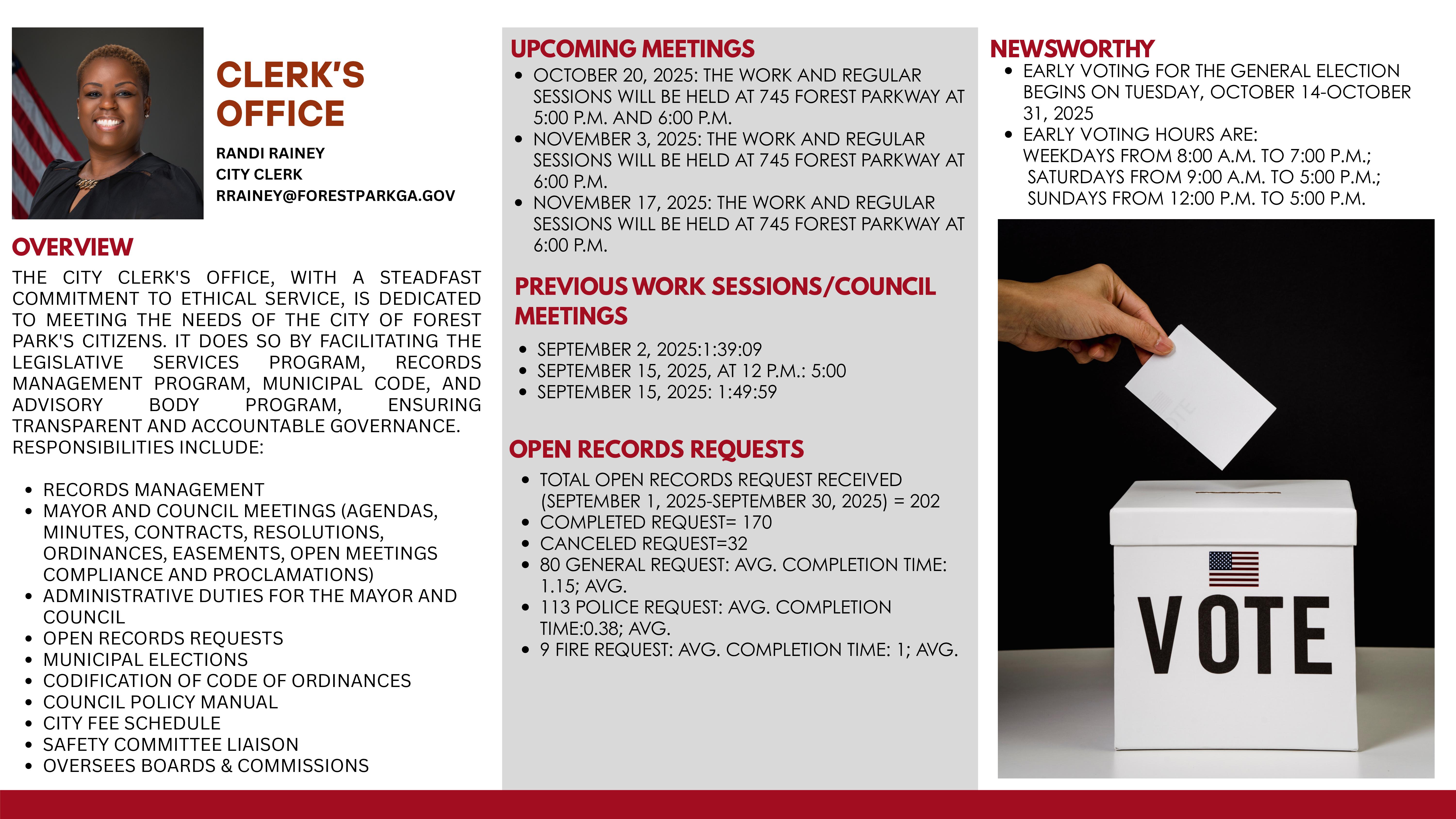 The City Manager's Office works cooperatively with all City Departments to prepare the Monthly Operations Report. The document was developed with the intent to create an additional communications tool highlighting the ongoing and seasonal activities of each department. The report intends to provide a "snapshot" of departmental operations and significant City activities monthly.