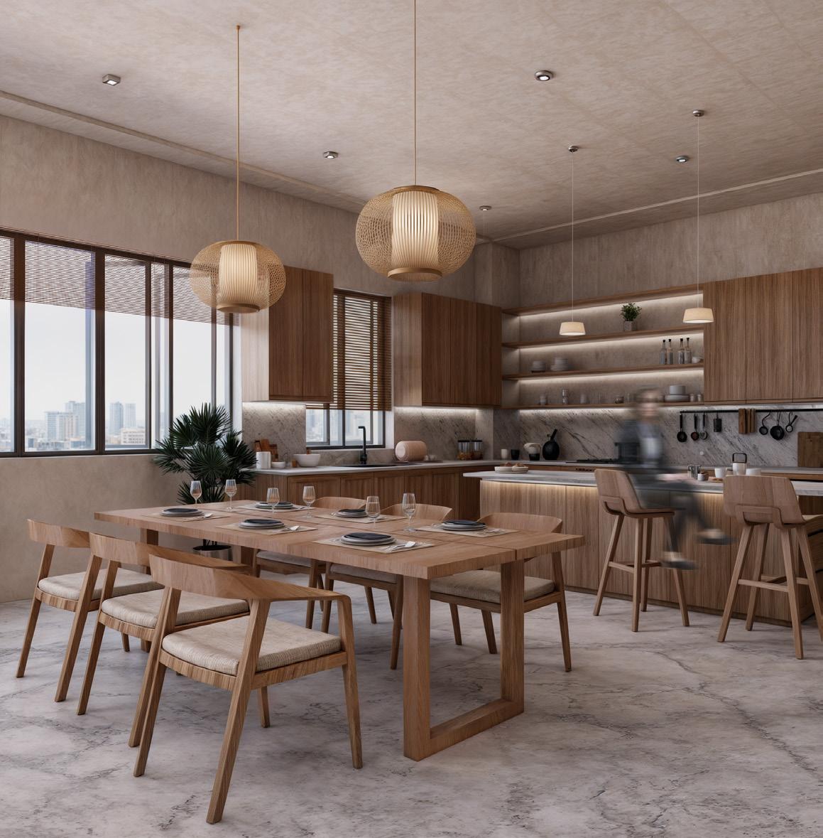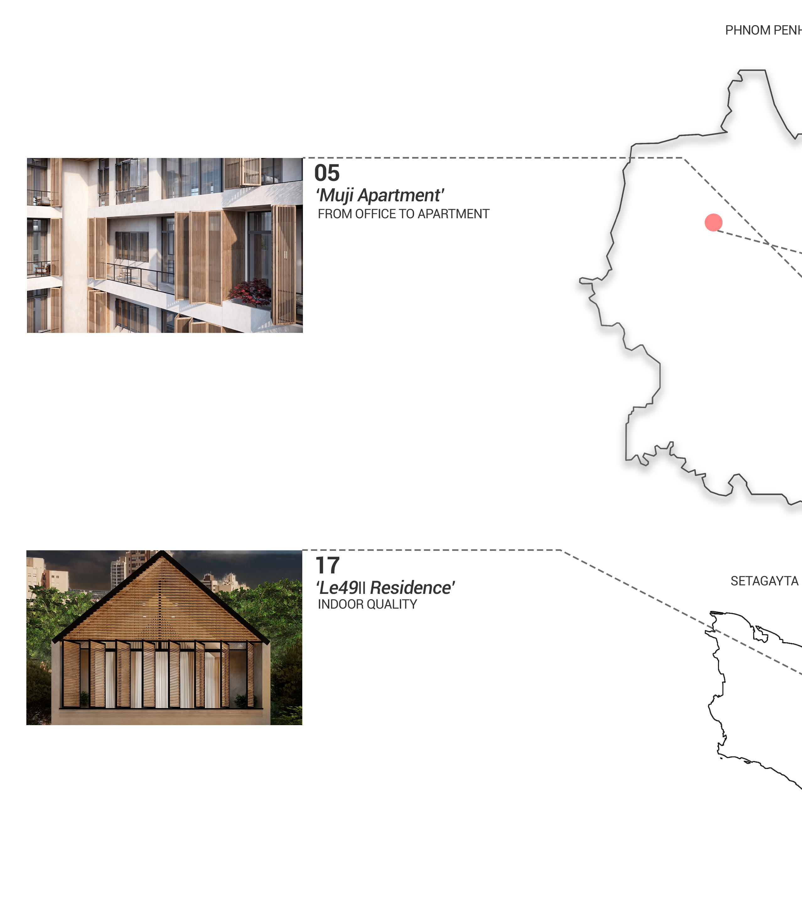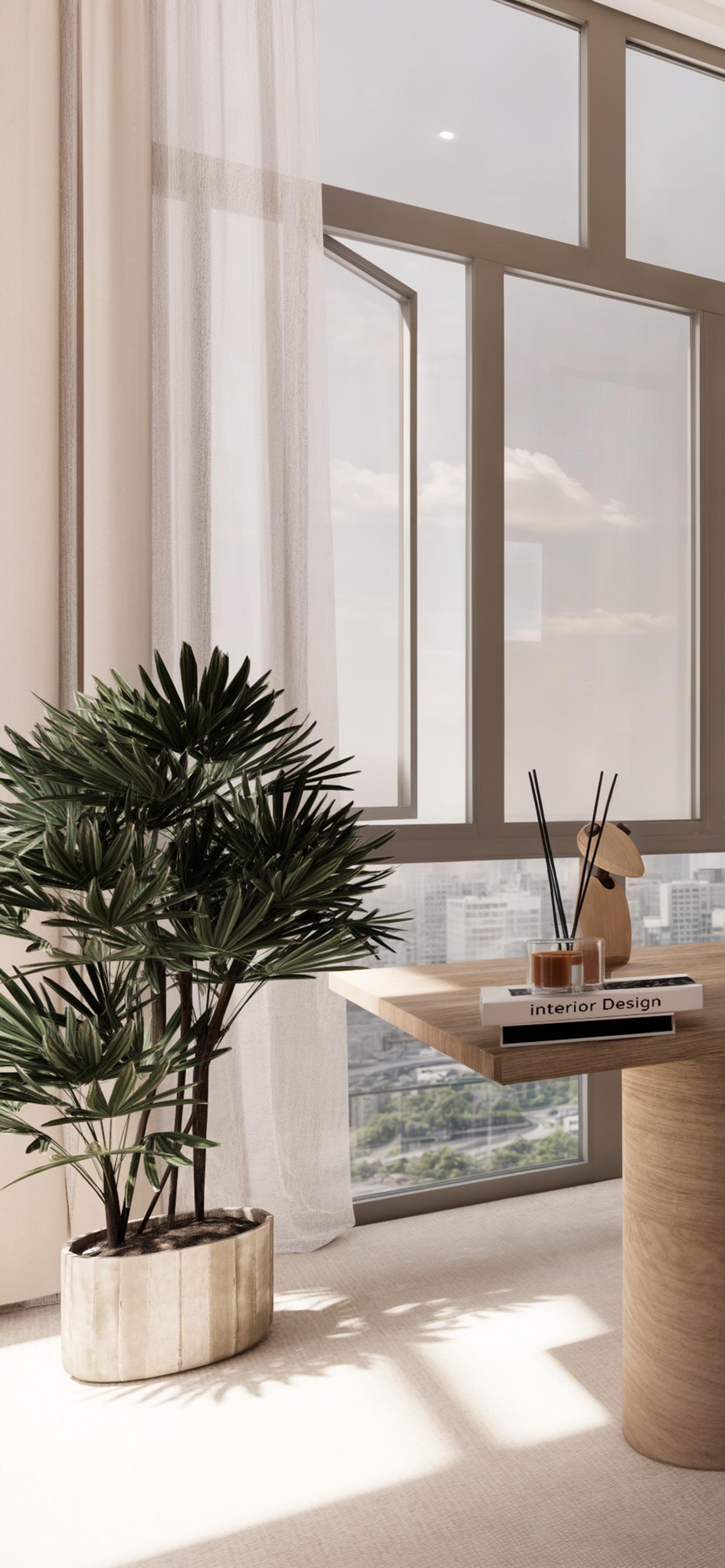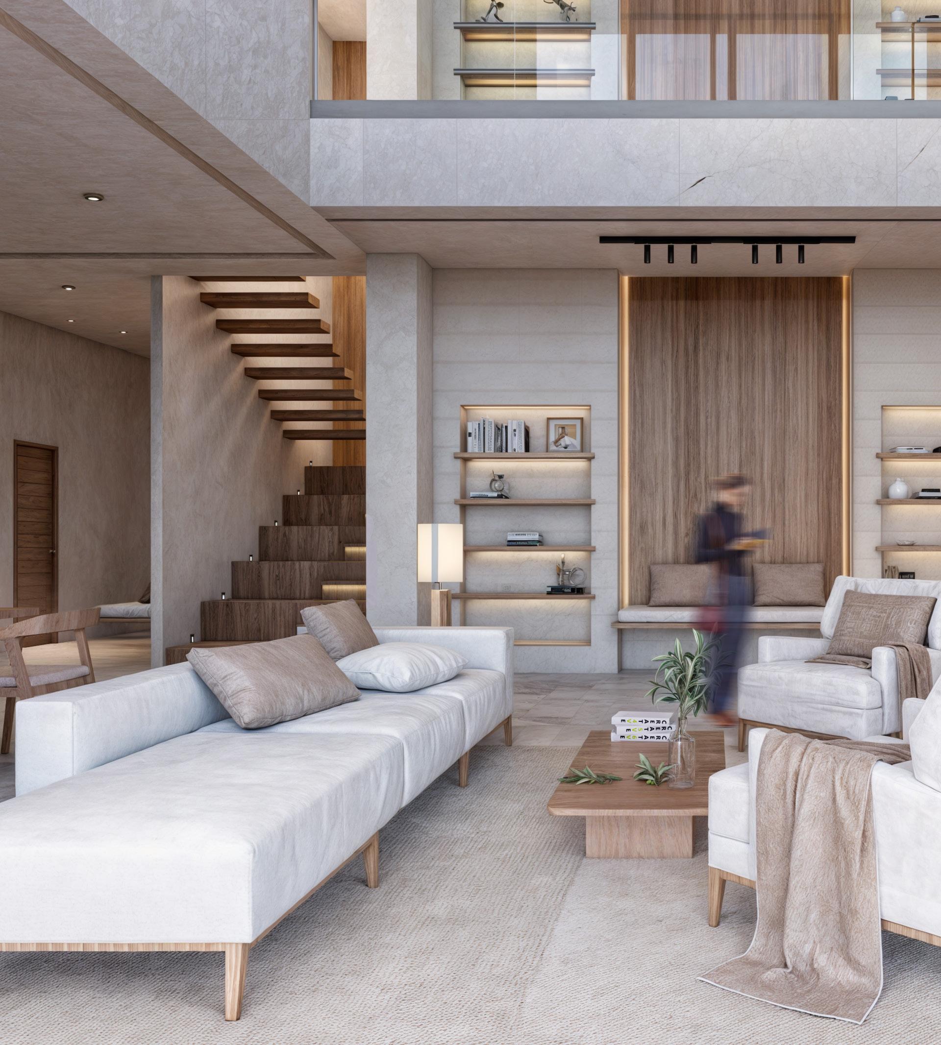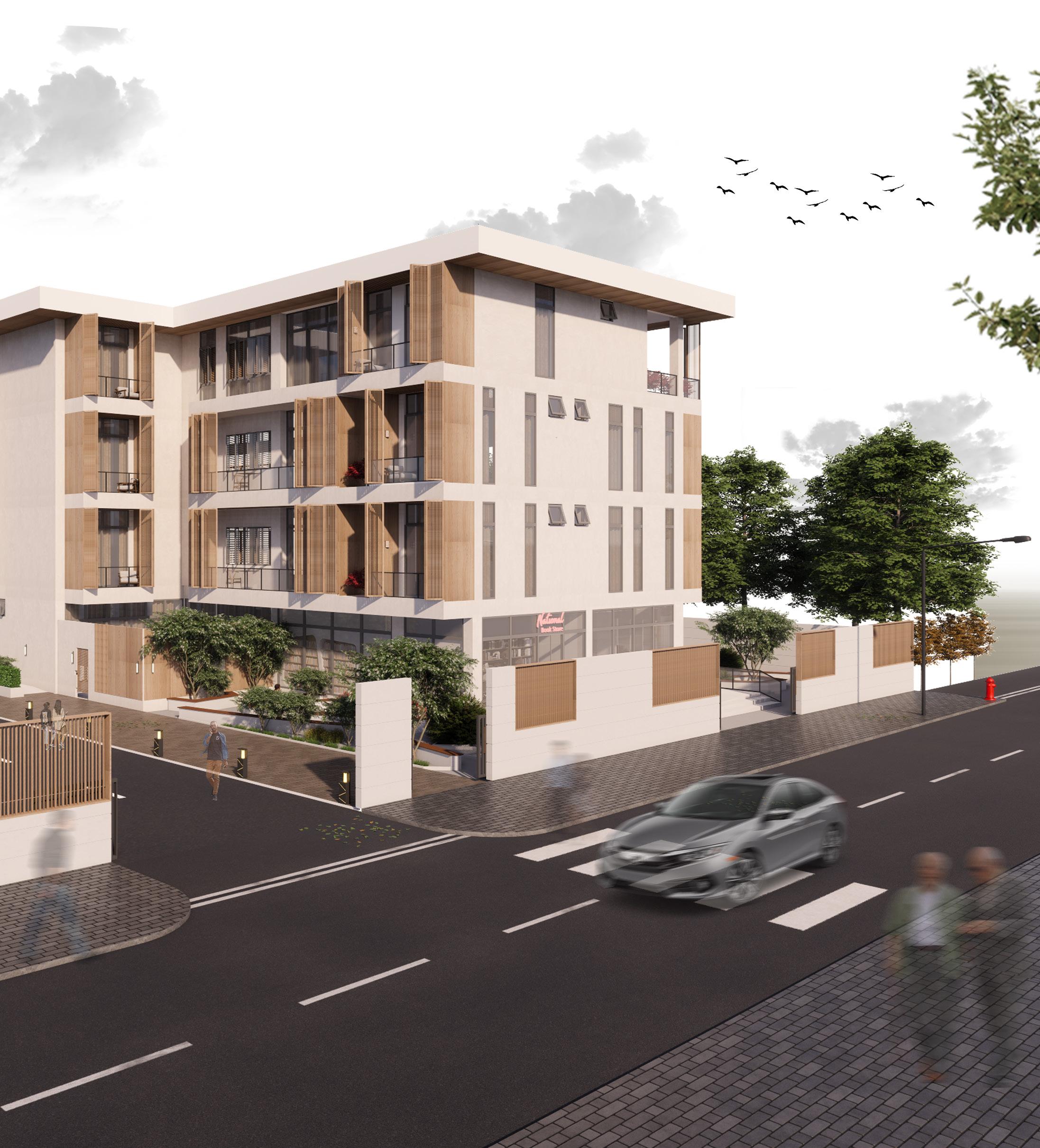 The ideas behind this concpet is to create a japandi-style aesthetic in a building to allow the guest feel ease, providing a comfortable living environment with privacy, allowing residential carriage access, adding shading devices to the facade, designing a duplex style in apartment living, and presenting an outdoor garden.
