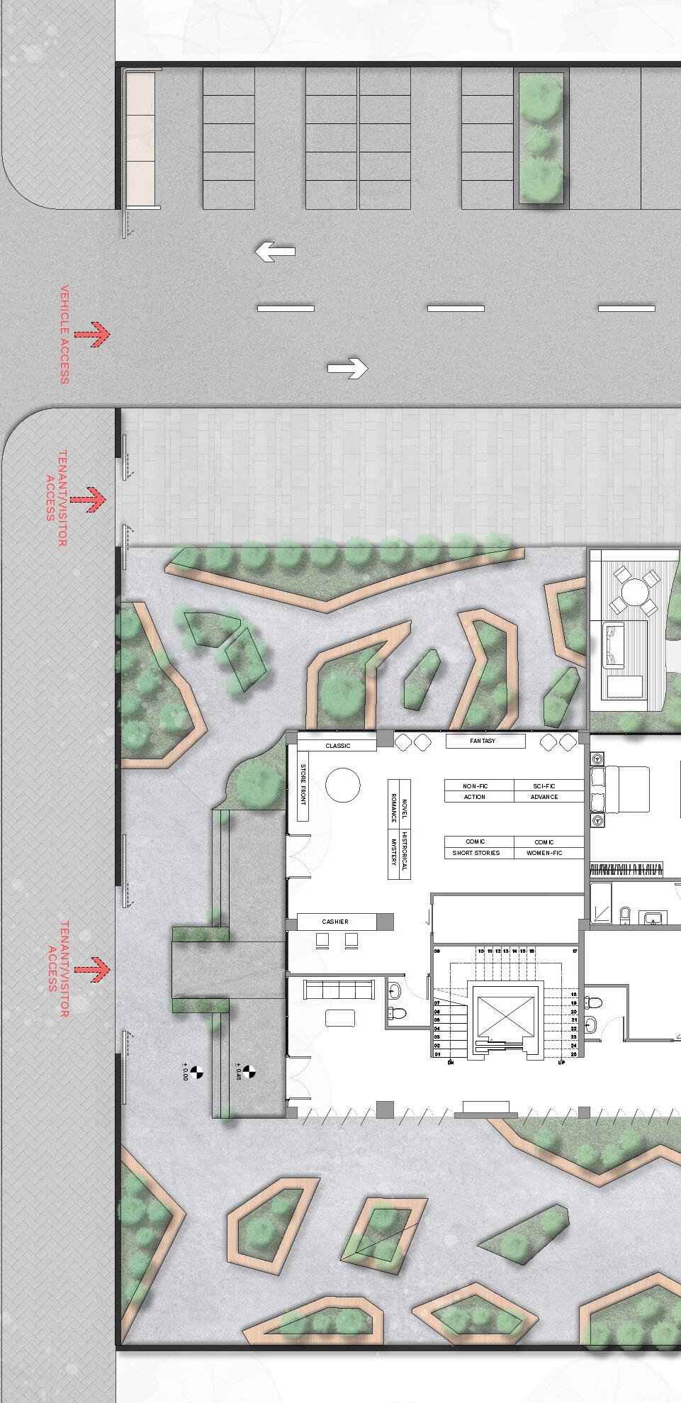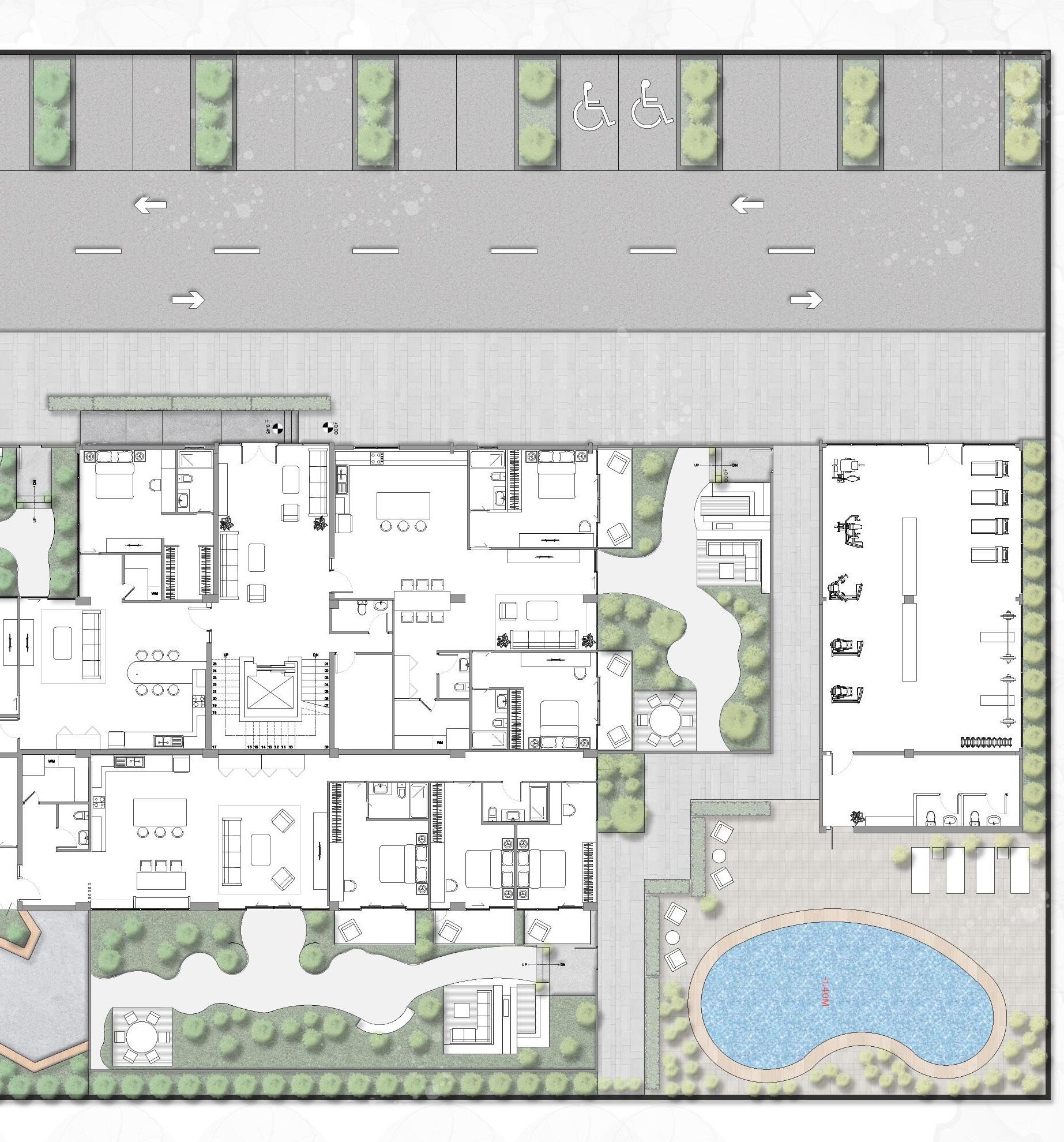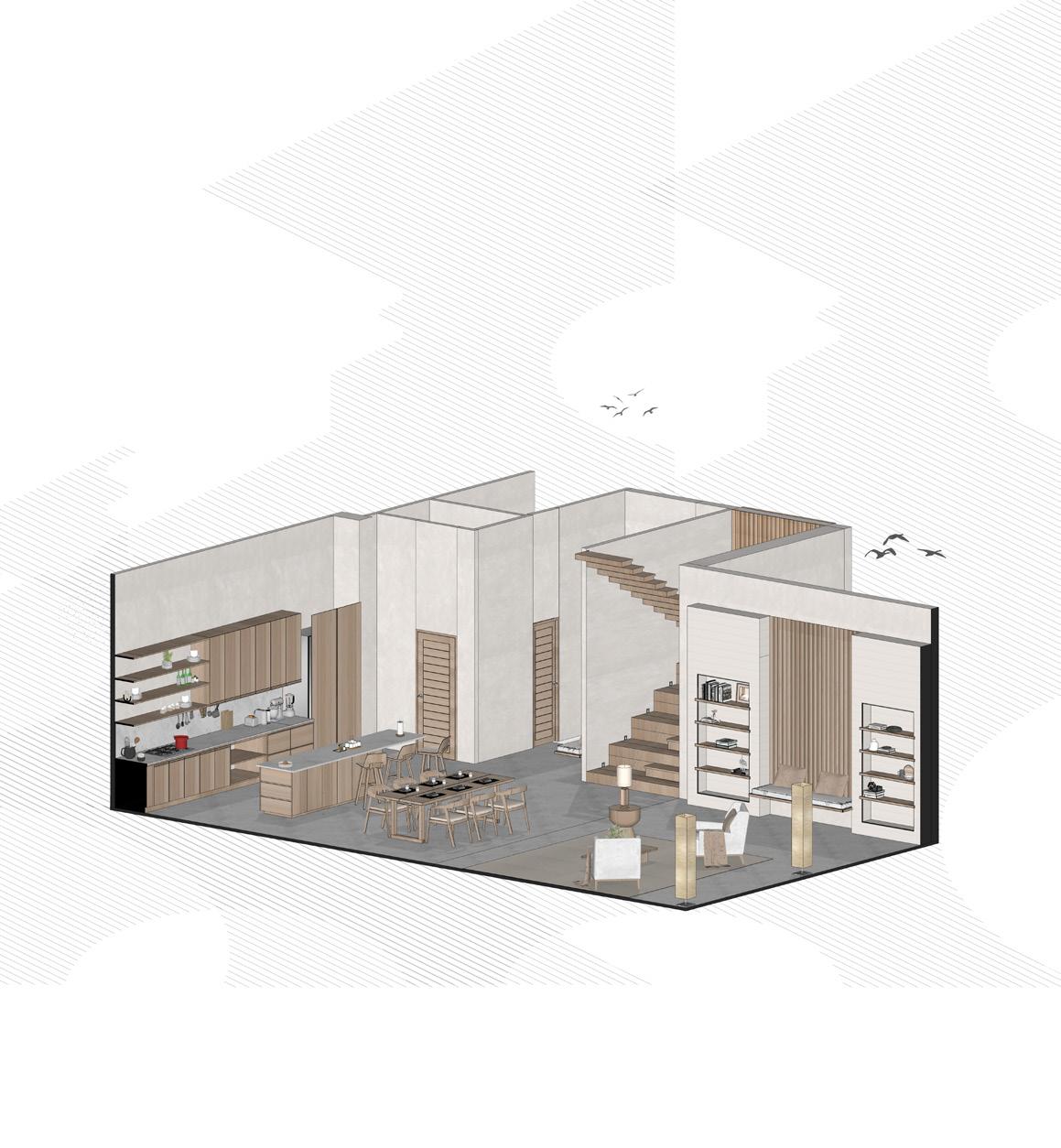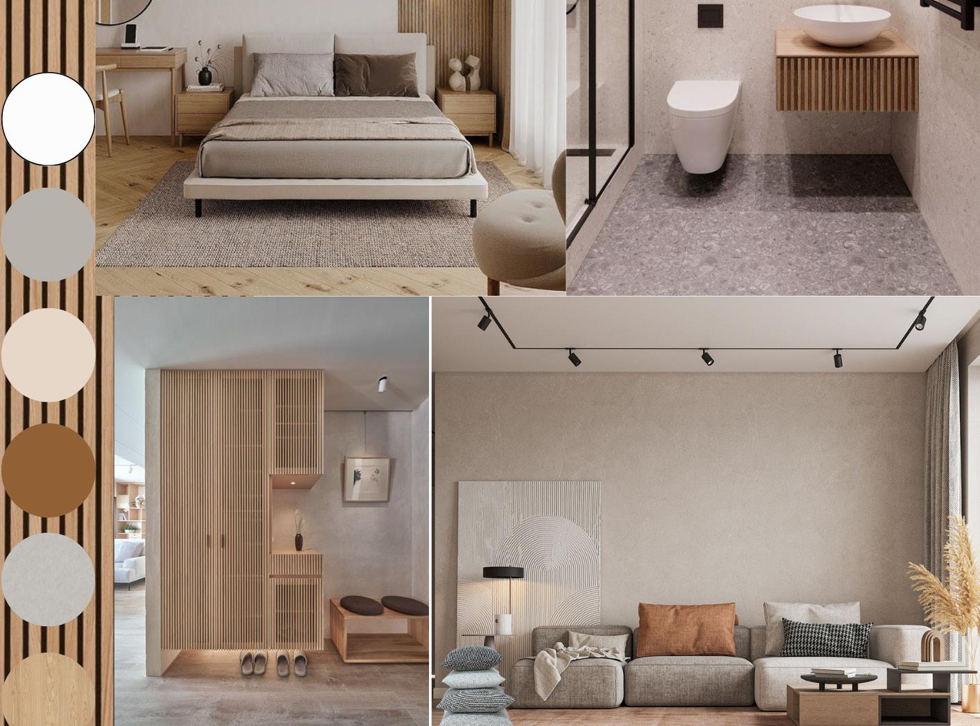 The ideas behind this concpet is to create a japandi-style aesthetic in a building to allow the guest feel ease, providing a comfortable living environment with privacy, allowing residential carriage access, adding shading devices to the facade, designing a duplex style in apartment living, and presenting an outdoor garden.