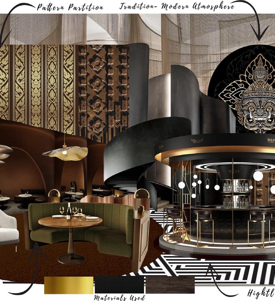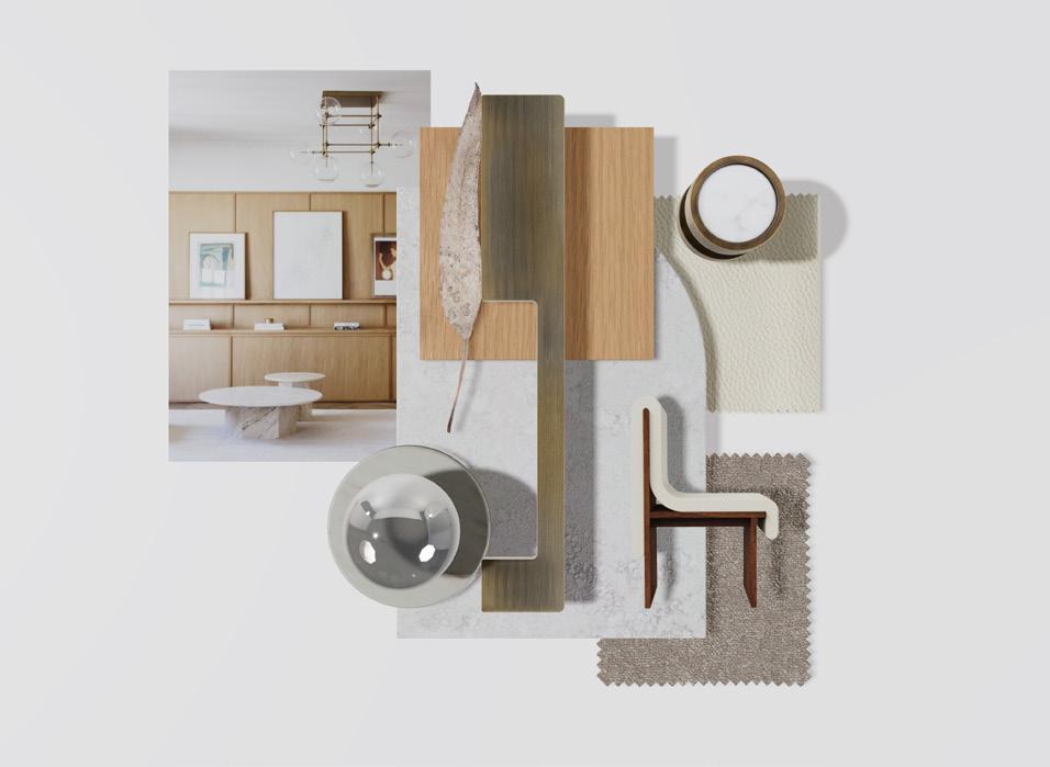 The moodbaord on the right shothe right of how the interior look and show the look and feel of the lounge with the interior look.