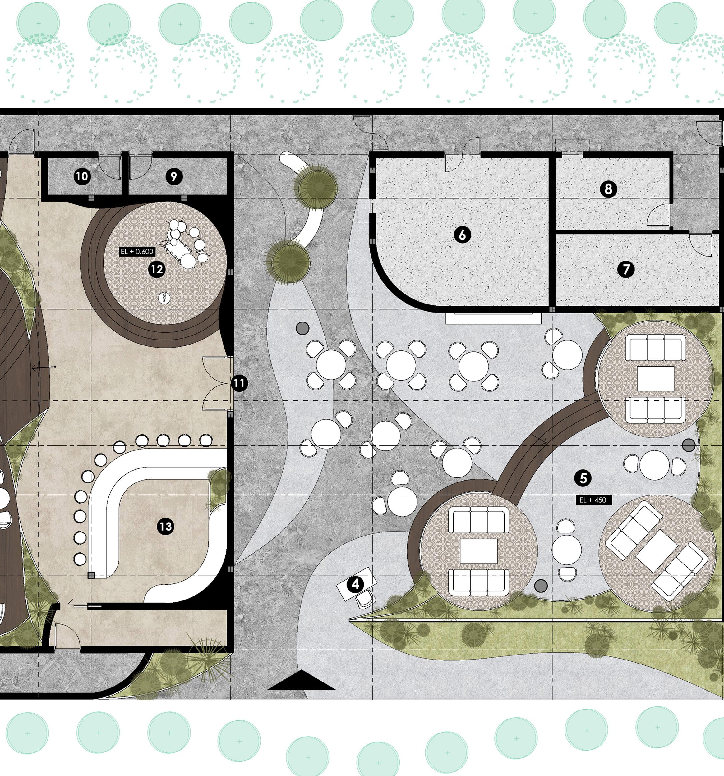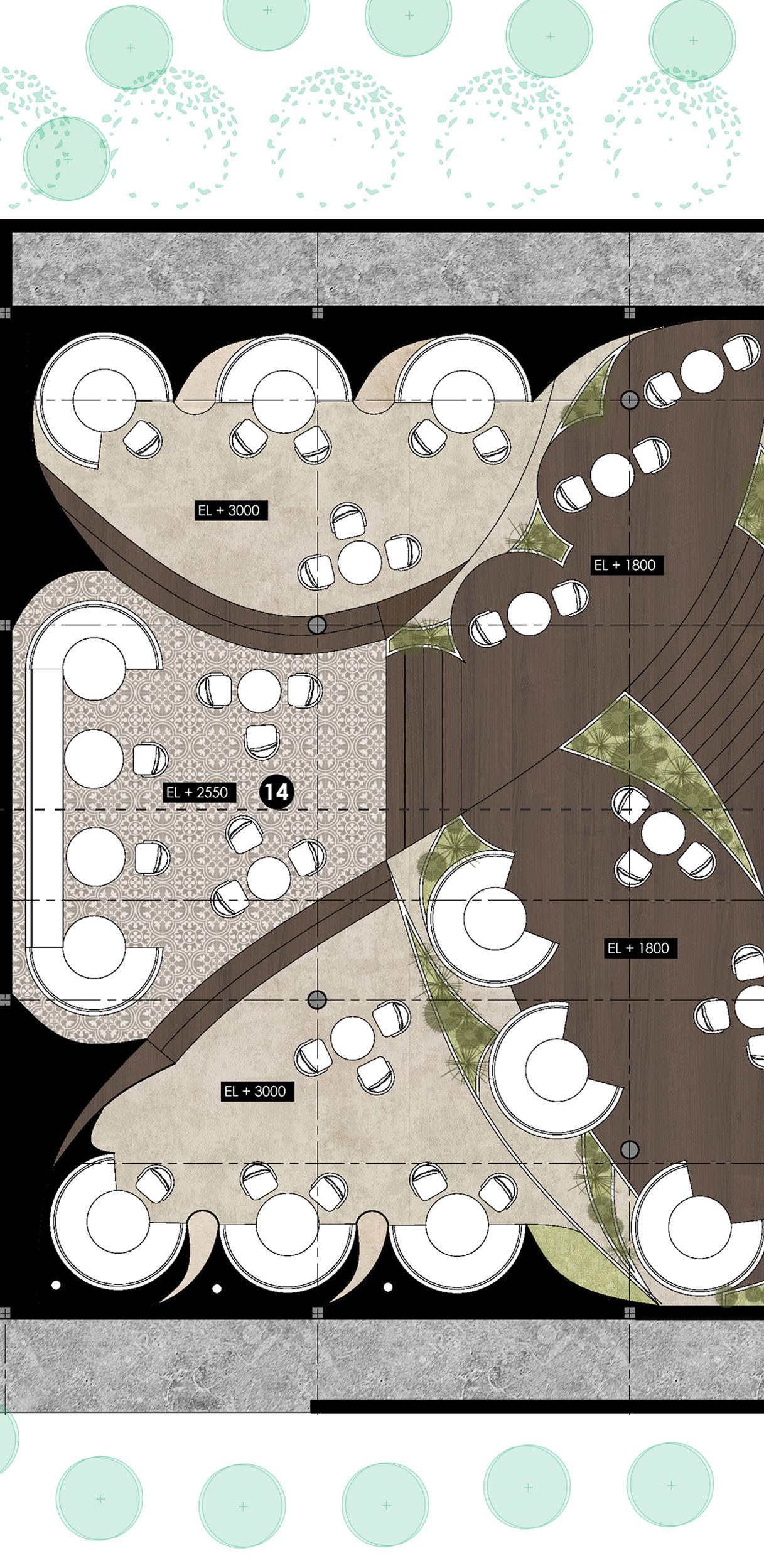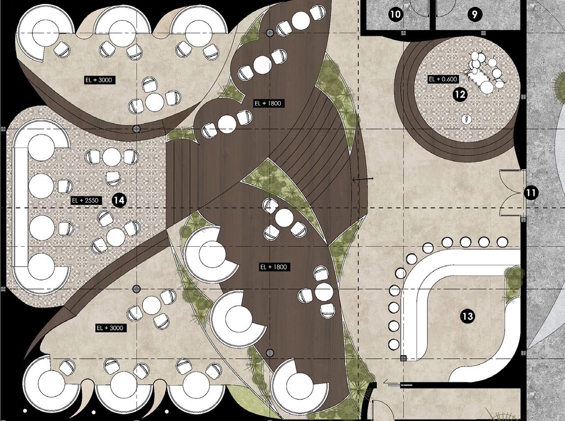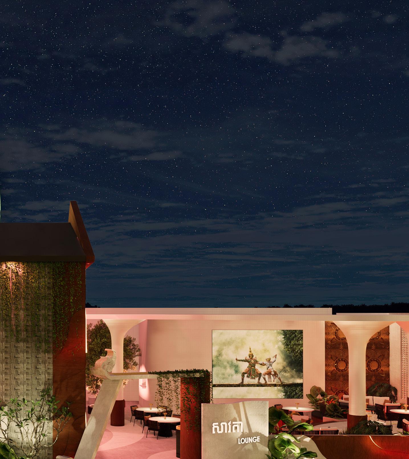 The main concept of this renovation project is called “Transitional Elegance” which will blend Khmer symbolism with modernism design while maintaining a sense of uniqueness and elegance. The design incorporates three Khmer symbols such as the Apsara Crown, the character in Lakhon Khol, and the organic form inspired by the Lotus Leaf. Evoking a sense of interaction, welcoming, harmonious along with luxurious vibe. Lotus leaf that will hold its organic structure incorporated with curvilinear forms to give the sense of fluidity and grace. The soft curves will give the overall interior mood a modern traditional atmosphere.