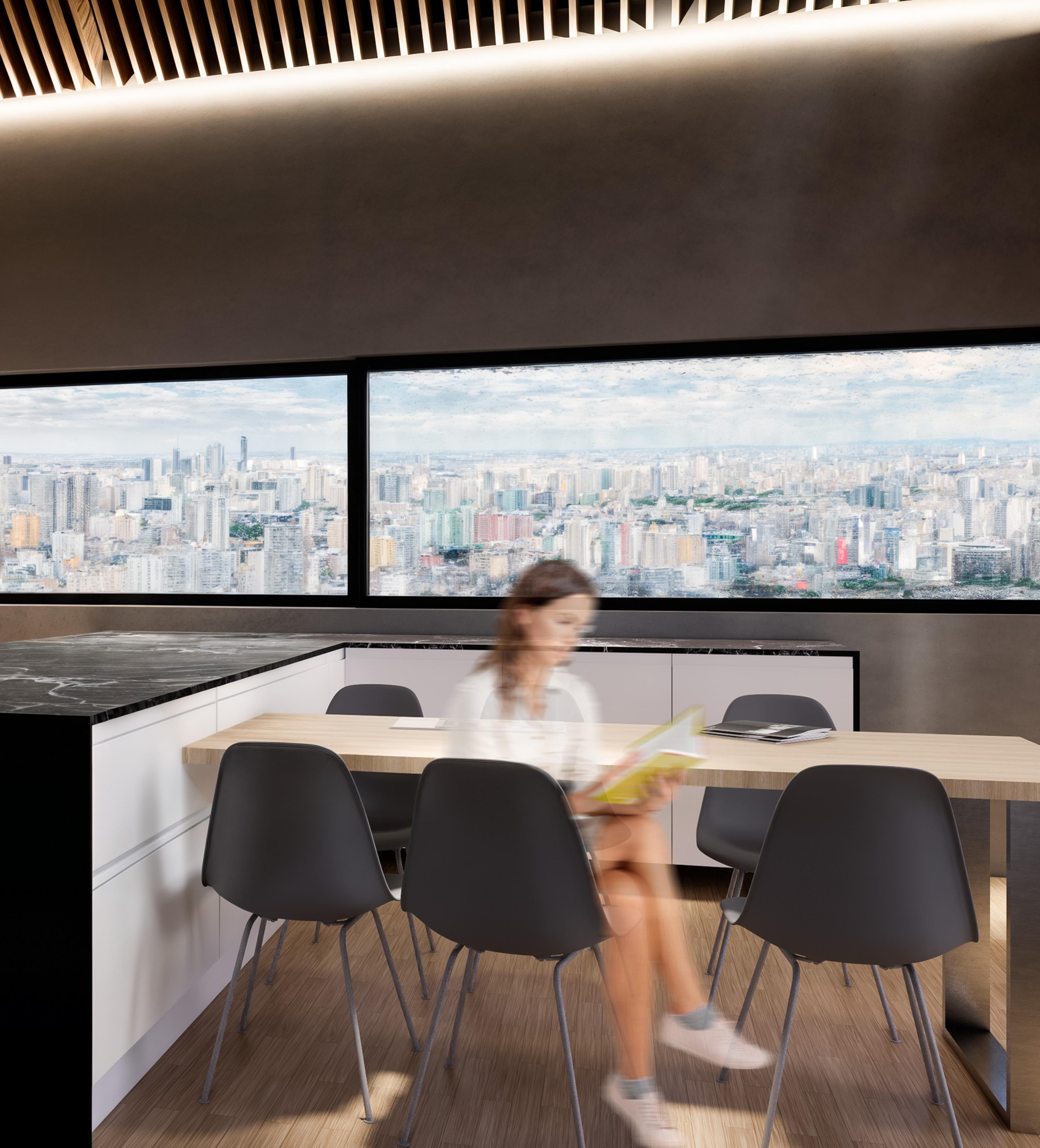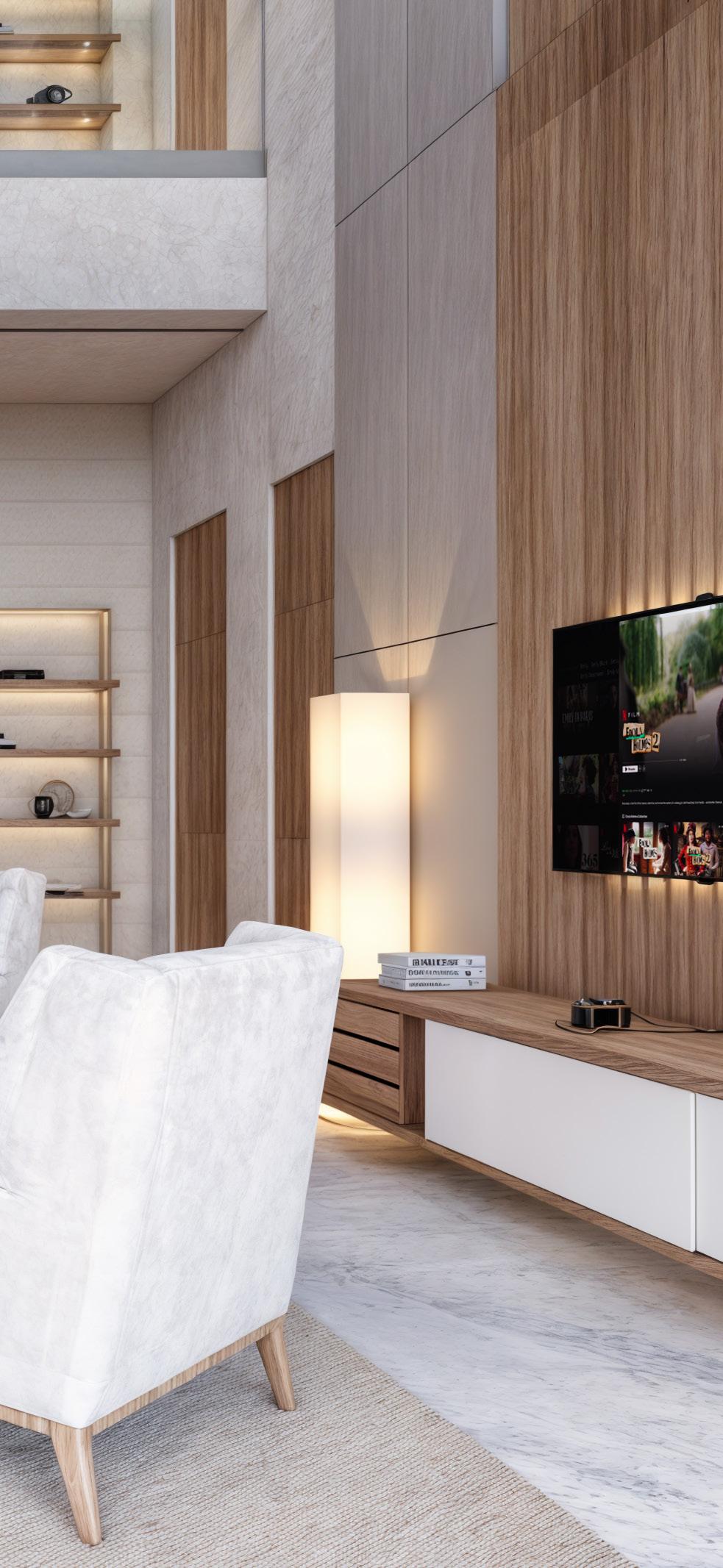 The living area is designed for both relaxation and entertainment, offering ample space to gather with friends and family or simply curl up with a good book. The large windows not only fill the room with light but also provide breathtaking views of the surrounding cityscape or natural landscapes