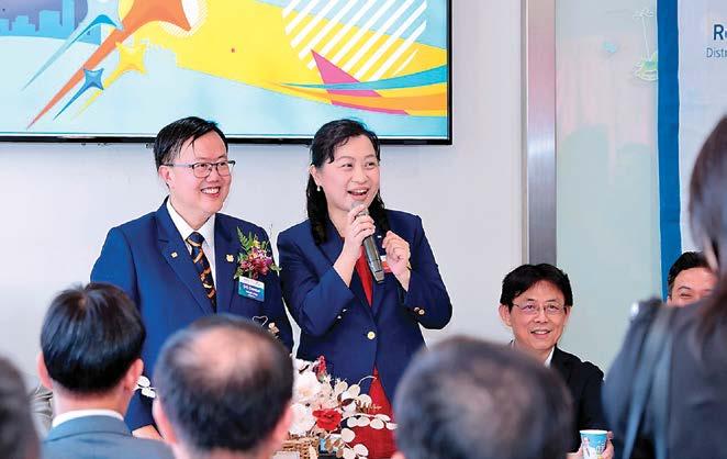 承如分區助理總監Rick說的,扶輪社不單單只有玩,計 劃要能夠永續,更要讓大家帶知識回去。今年除延續社上服務 計劃,亦會配合分區所安排的職業參觀、聯合例會等。同時, 也安排家庭旅遊、職業參觀,凝聚向心力與對不同產業的瞭 解。而透過次級社團活動,可加強寶眷之間聯誼外,亦可讓來 賓瞭解本社,進而入社,例如:女力下午茶與讀書會。我也會 盡全力以歡樂、永續、知識,與大家共同努力,以期不辜負社 友們的期望。