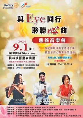 彰化松柏扶輪社自成立以來,一直致力於 服務社會和提升社區的福祉。今年,在社長張 睿芩Alyssa的帶領下,我們特別關注視障者 的需求,計劃舉辦一場蔡明秀與黃裕翔「與 Eye同行 聆聽心曲」慈善音樂會,以募集資 金幫助視障者學習芳香療法和調香等技能,進 而提升他們的職業能力。這個計劃由服務計畫 主委陳純香Alsa提案,並且得到了廣泛的支 持和關注。