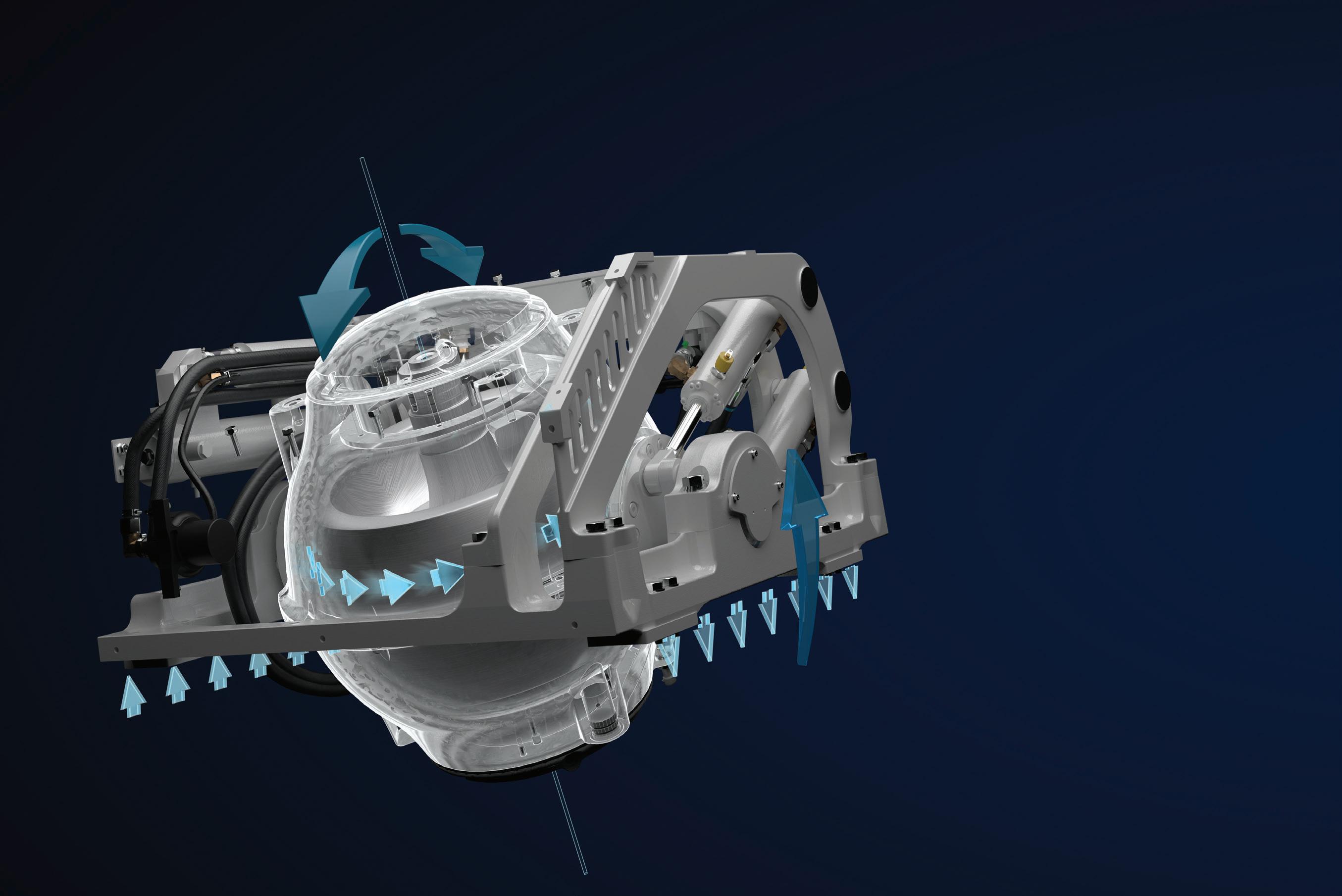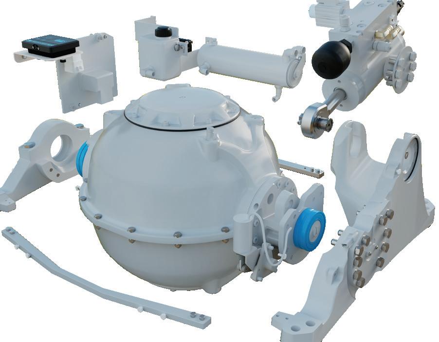 À l’intérieur d’une sphère sous vide, un volant d’inertie tourne à une vitesse pouvant atteindre 9 750 tr/min. Lorsque le bateau roule, la sphère s’incline vers l’avant et vers l’arrière (précession), produisant un puissant couple gyroscopique à bâbord et à tribord qui contrecarre le roulis du bateau.