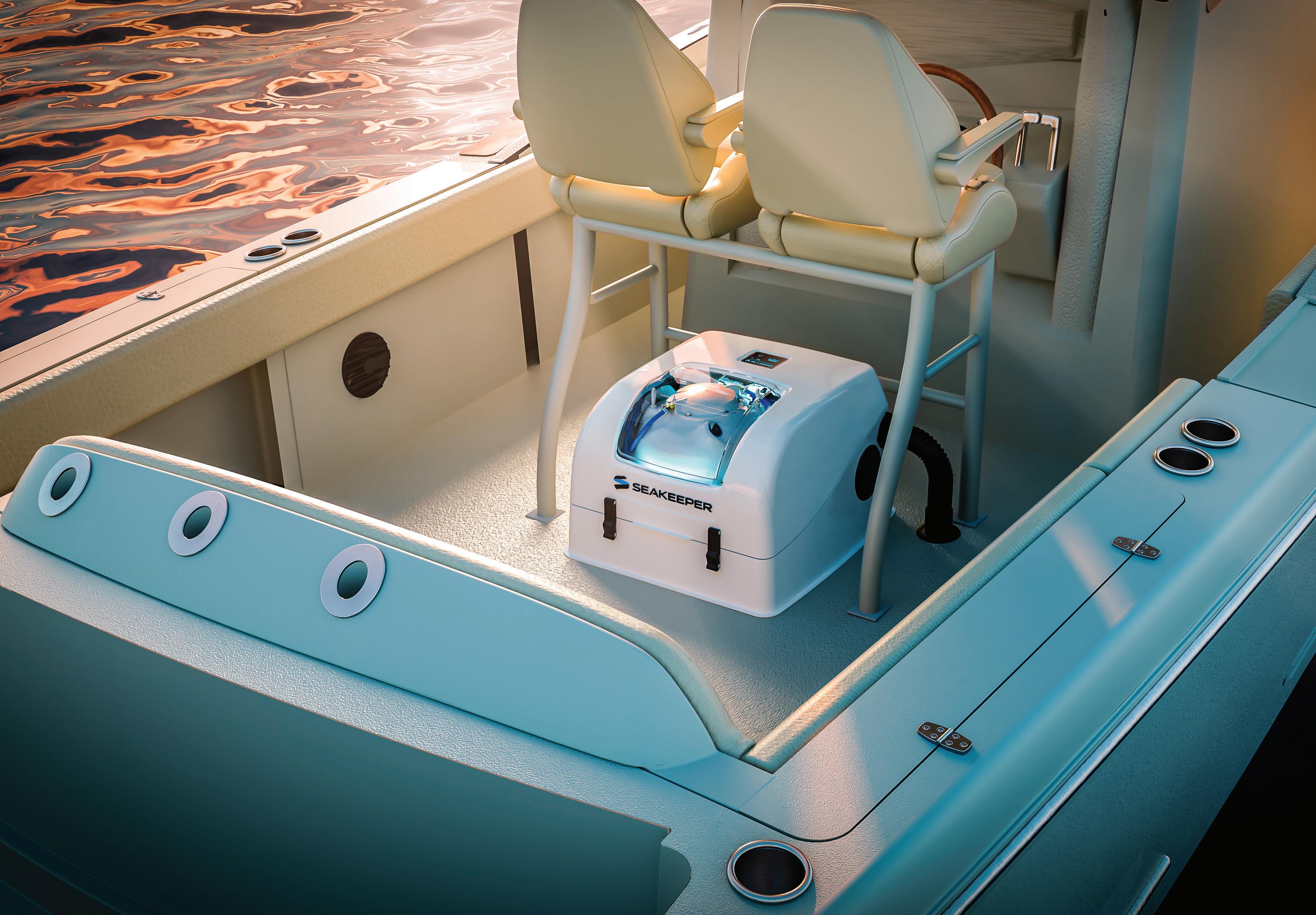 Un Seakeeper 1 en un barco de consola central de 26 pies se muestra aquí a escala.
