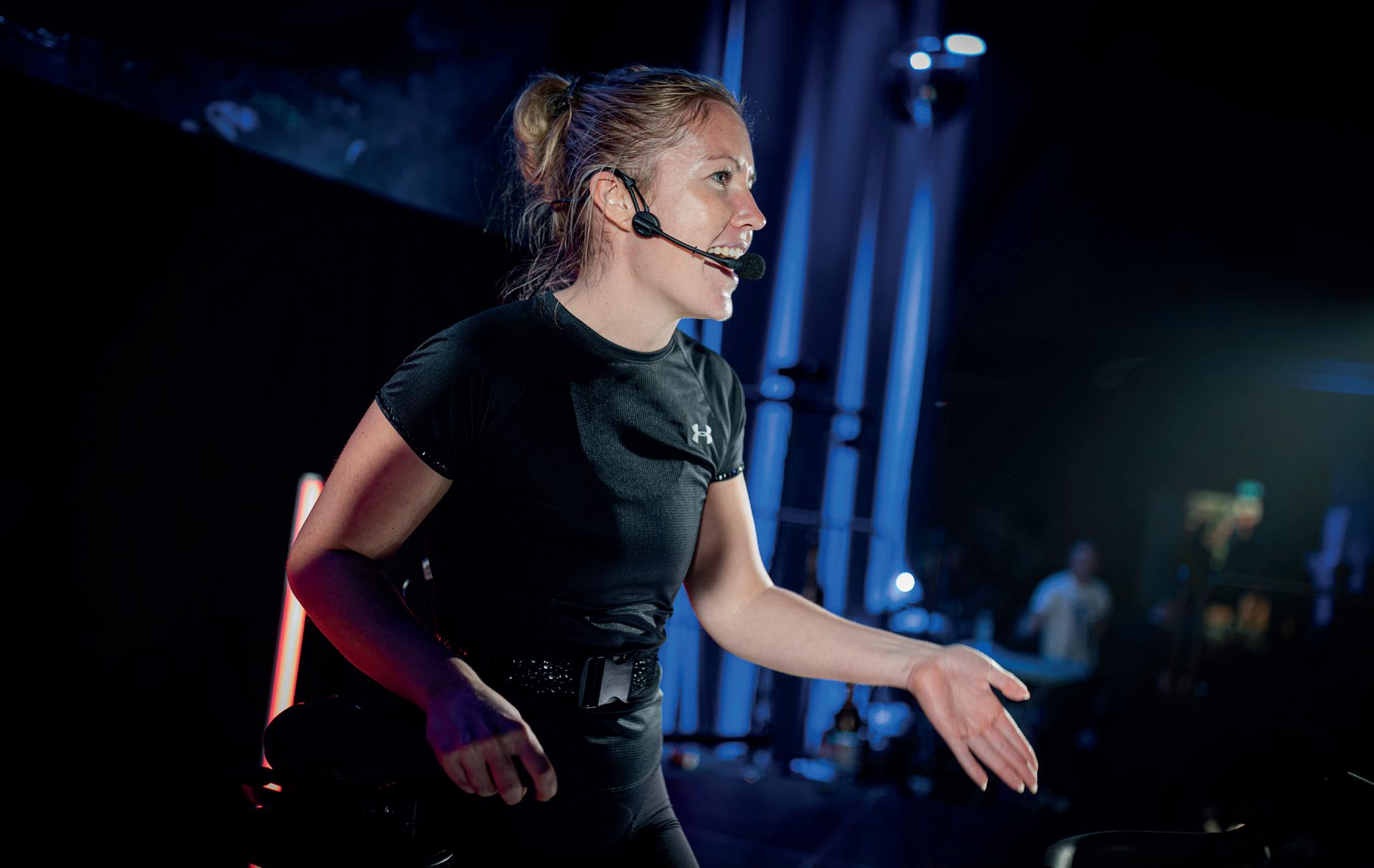 Most classes are pre-recorded and 20–30 minutes long; each takes around 20 hours to design, film and edit, so we upload one or two a week. We ride to the beat, although it isn’t rhythm cycling: I include sprints, climbs and jumps and every song has its own focus.