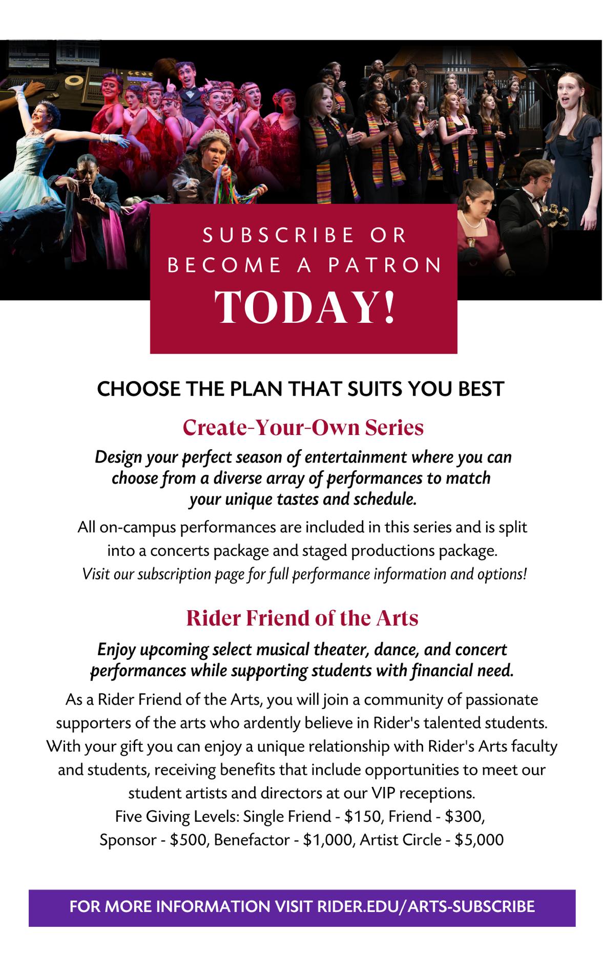 Michael T. '89 & Susana Santaguida '89 Gummel and Kasey & Billy Ziff for their support of our Rider Friend of the Arts patron program.