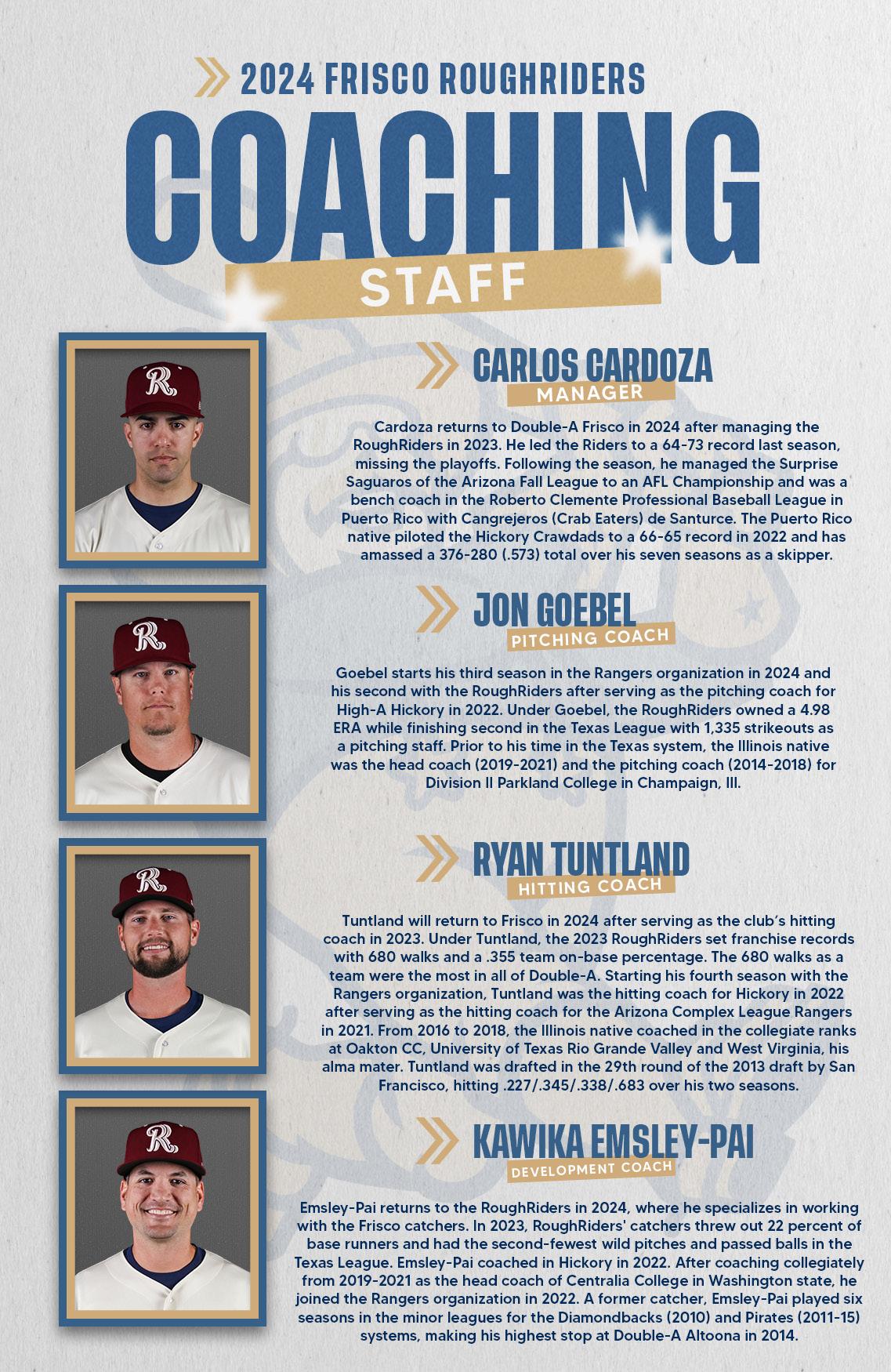 Chavez was born in Venezuela and completed high school in Texas, graduating from Little Elm High School. He played baseball at Midland College and was drafted in the 22nd round by the Rangers in 2018. A member of the 2022 Texas League Championship Frisco team, he played 45 games in High-A last season before joining the RoughRiders for 30 games and appearing in three Triple-A games in Round Rock.