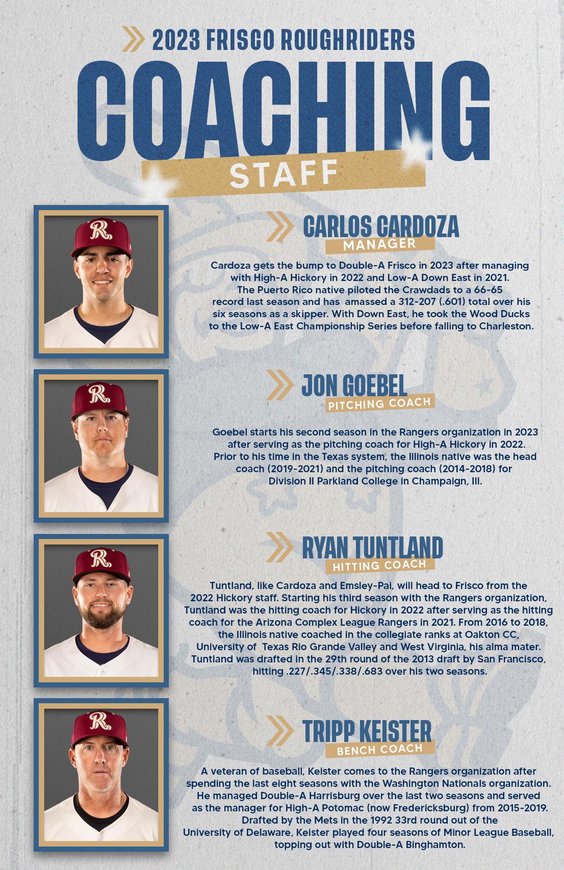 Biggers was beckoned back to Texas in 2018 when the Rangers selected him in the eighth round. Originally from Missouri City, Texas, Biggers spent a year at Cisco Junior College in Texas and two years with the Arkansas Razorbacks, making the College World Series at the Junior College level and the Division-I classification. Biggers made his RoughRiders debut in 2021 and hit .281 for Frisco in 2022. With a birthday on April 7, Biggers will spend most of this season as a 26-year-old in his fifth season of pro ball. He has played every position for Frisco except pitcher and catcher.