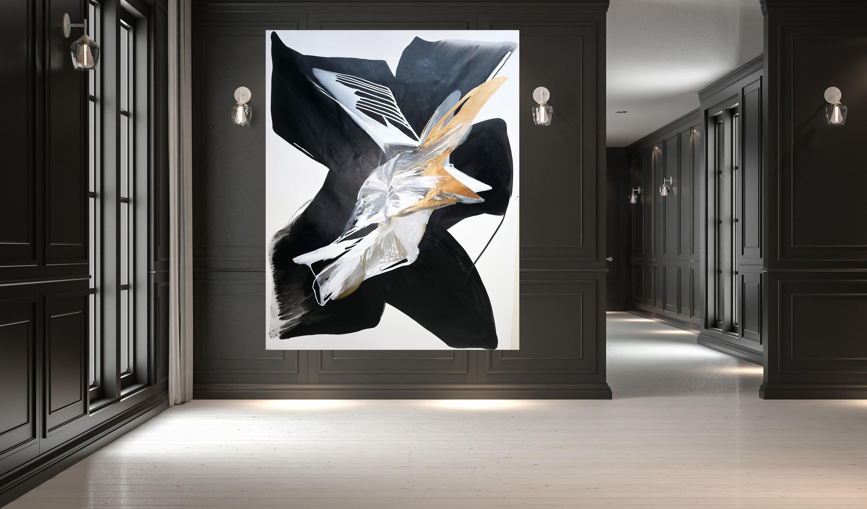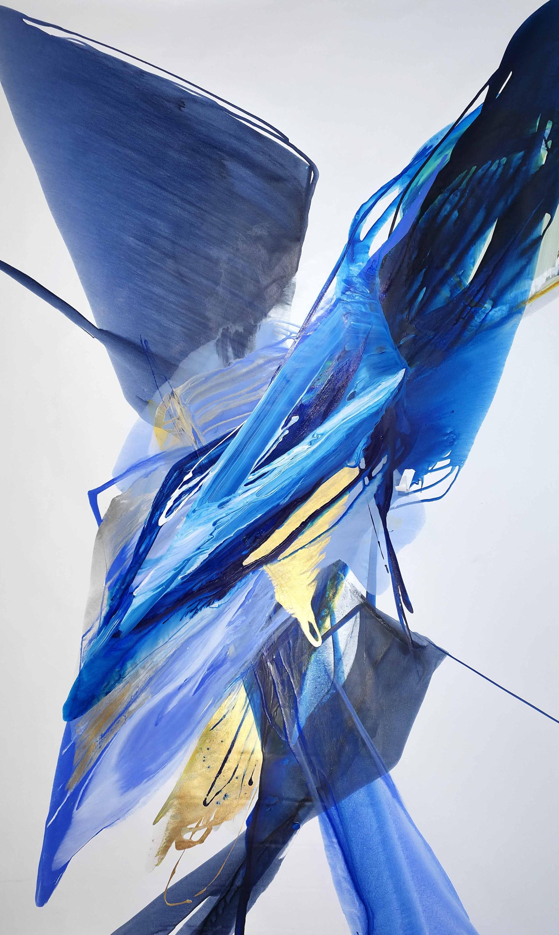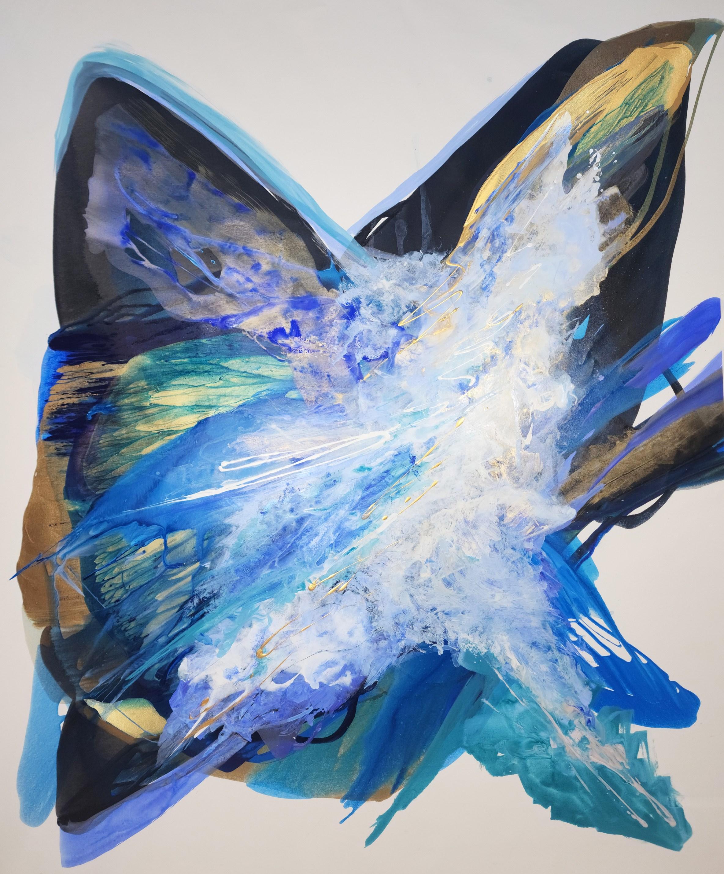 “The Speed of Thought” acrylic with gold , silver & bronze on canvas 60 x 48 inches (rolled))