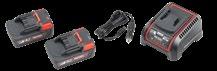 Batteria e caricabatterie da 18 V Batteria da 2.5 Ah – 56513; Batteria da 5.0 Ah - 56518; Caricabatterie 230 V - 56523 (EU) Set di 2 batterie da 2,5 Ah + caricabatterie - 61743; Set di 2 batterie da 5,0 Ah + caricabatterie - 45433