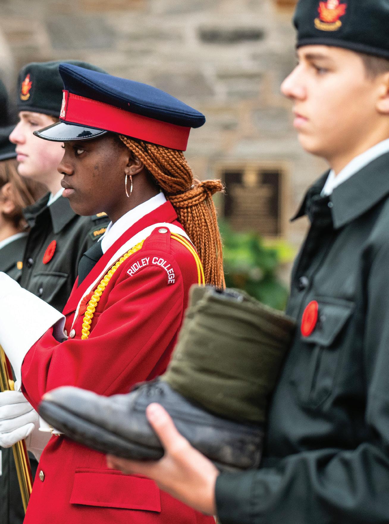 With a wonderful complement of guest writers and articles, this special edition pays tribute to great women in several categories, including inspiring features of service and impact. From the story of sisters Emma ’24 and Olivia Massis ’22 and their Shoebox Project (p. 23) to the transformative impact of the non-profit STEP Empowerment Centre, which was founded and supported by Suzanne Court ’86, it is easy to trace the threads of Terar Dum Prosim across the generations. A 50th anniversary is an opportune time for historic reflection. Readers can enjoy many poignant memories and reflections from the mother-daughter duo of Charlene ’83 and Julia ’16 Hutton, from past Ridley College Board Chair, Georgina Black ’85, artist Diana Bentley ’03 and educator and social activist Michele-Elise Burnett ’86. And for a real taste of history, a beautiful reflection on the transition to co-education from Ridley trailblazer, Chantal Ramsay ’74.