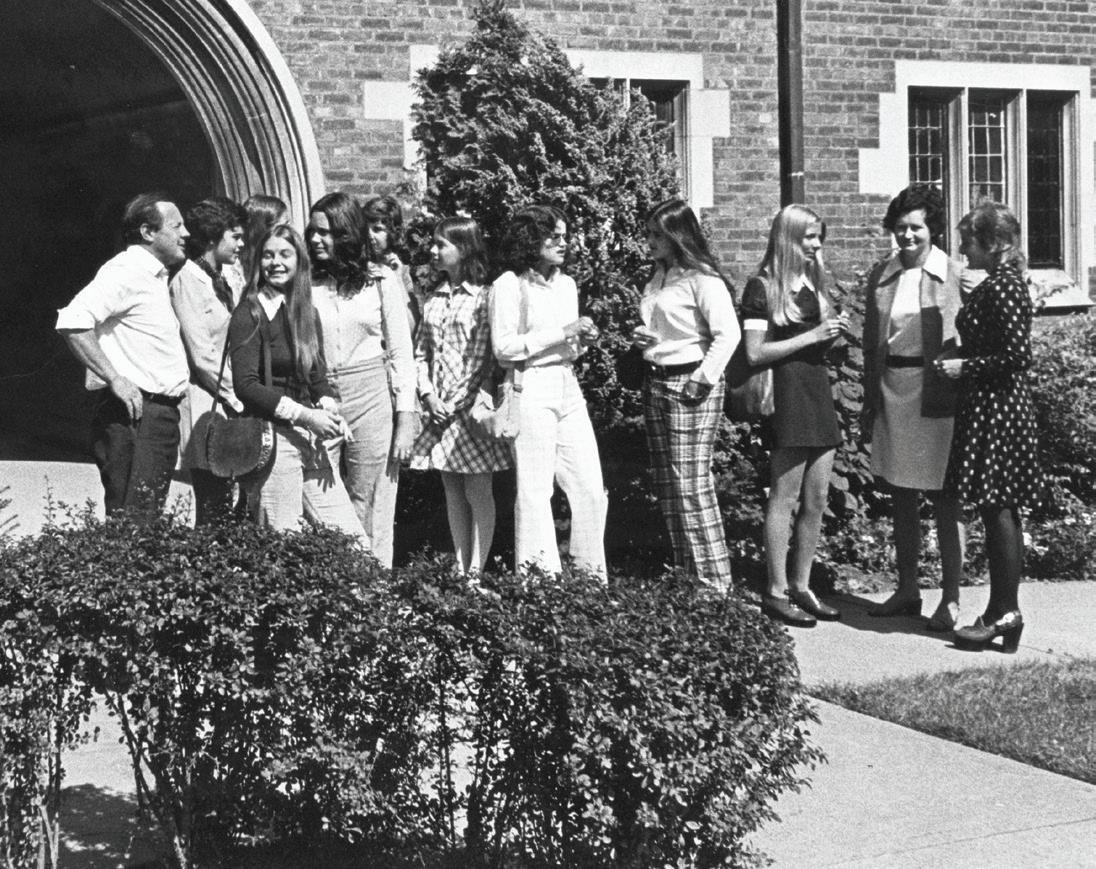 Bottom Row (L to R): The Rev Jack Rose, Housemaster, Dean’s House (Chaplain 1970–80), Barb Ambrose ’74, Heather Graves ’74, Abbey Newman ’75, Robin Huxtable ’75, Marianne Long ’75, Jane Rose, Richard Bradley