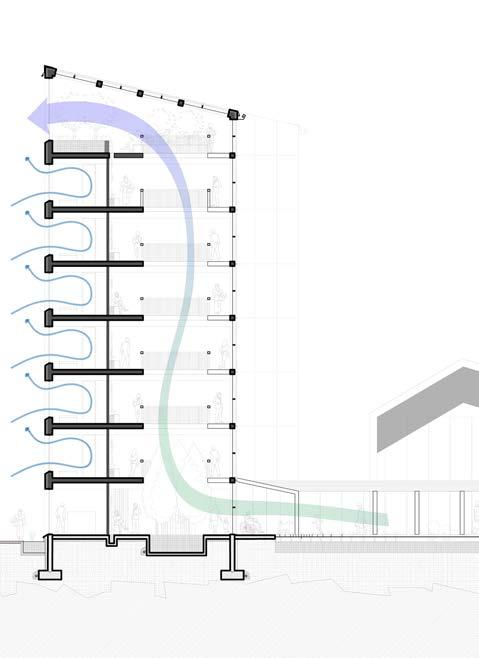 The project addresses site and context issues by maintaining a mundane form and blending the size and scale of solids and voids with neighboring buildings. The building’s corners are cut to fit the site accordingly.