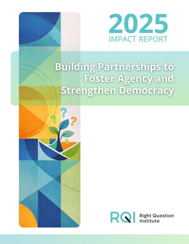 The Right Question Institute works to build a more just and equitable democracy. We strengthen people’s ability to ask questions and participate in decisions that affect them. When people of all ages learn to ask the right questions, it leads to feeling a new sense of agency, confidence, and power.