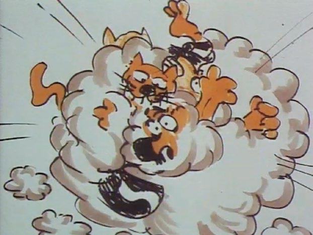 Te show was the creation of Grange Calveley. Te ever- curious and optimistic Roobarb was in fact based on his own Welsh Collie who, on first arriving at the family home, excitedly ran around the lawn before “watering” the rhubarb to get his name! Te sarcastic low-energy pink cat next- door, Custard, was the perfect foil for Roobarb’s high jinks and, of course, they were joined by various other characters as the stories are played out in the wide-open spaces of the line-drawn garden.