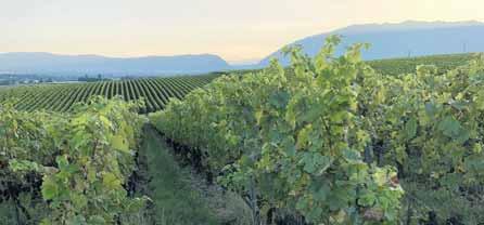 A la sortie de la gare de Satigny, remontez tout droit jusqu’à Choully. Vous voici au cœur de la plus grande commune viticole de Suisse, Satigny, entièrement entourée de vignobles. Tournez à droite sur la route du Crêtde-Choully, continuez, puis tournez à droite en descendant la pente jusqu’au hameau de Bourdigny. Retournez vers l’extrémité supérieure du village de Satigny, mais suivez les panneaux indiquant Peissy, l’un des plus jolis villages, qui abrite plusieurs des meilleures caves de Genève. Les visites fréquentes de citadins venus déguster et acheter du vin en font un endroit animé. La rue principale descend à droite. En bas de la colline, un panneau de bois de Genève Terroir énumère les arômes des vins. Pour vos futures excursions, la route qui se trouve droit devant fait partie d’une longue piste de randonnée cantonale pourvue de plusieurs panneaux éducatifs semblables. Suivez plutôt ceux situés à gauche en direction de Russin, qui vous ramènent