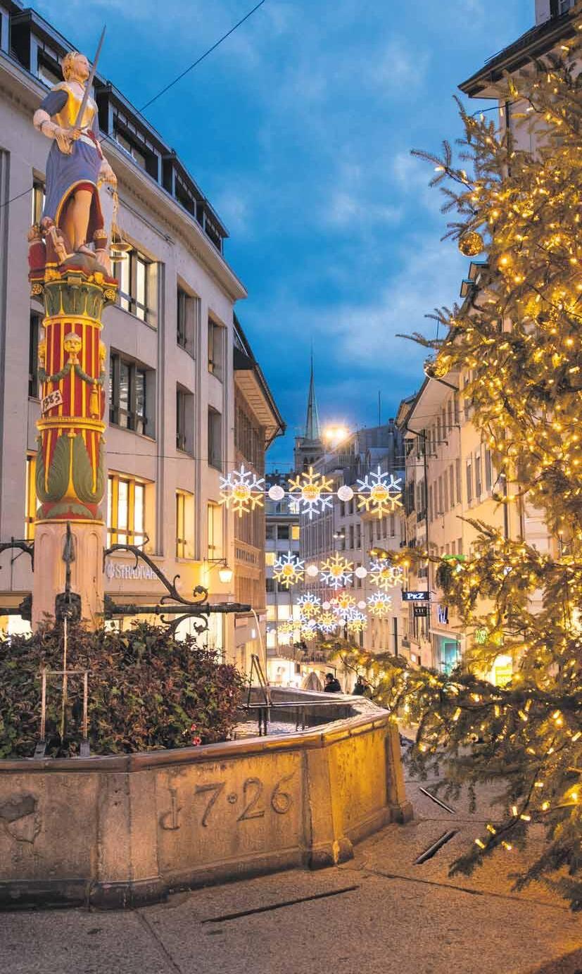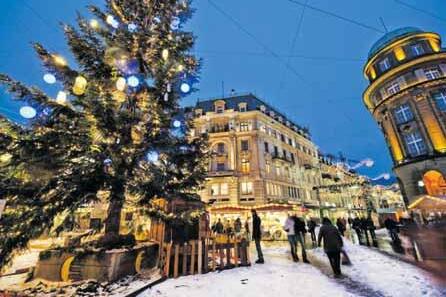 Installé autour du pont Kapellbrücke, le marché de Noël de Lucerne, qui se déploie aussi sur d’autres artères lumineuses, est une véritable carte postale hivernale. Atmosphère intimiste, chalets pittoresques et vue imprenable sur les Alpes et le lac. Le marché se distingue par son choix de produits artisanaux et locaux. C’est l’endroit parfait pour dénicher un souvenir unique tout en flânant sous les guirlandes étincelantes. Quant à l’Europaplatz, elle se transforme en royaume glacé: une patinoire face au lac des QuatreCantons, où un chalet chaleureux et des pavillons accueillants invitent à une pause hivernale.