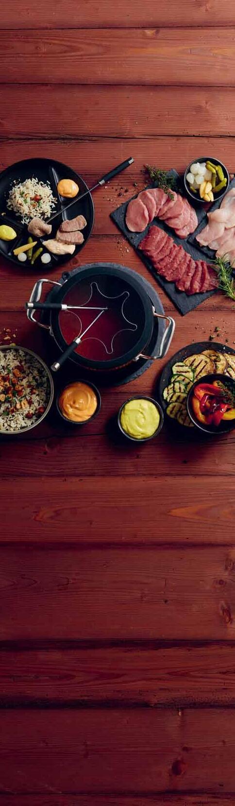• Toutes les fondues (bressane, chinoise, bourguignonne, au poisson, etc.)