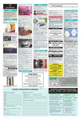 VOS PETITES ANNONCES DE PARTICULIERS DANS GHI – JOURNAL + WEB + IPHONE COMPRIS TOUTES RUBRIQUES Tarif au mot TTC et à la semaine: CHF 1.65 Pour 2 semaines consécutives: CHF 1.50 Pour 3 semaines consécutives: CHF 1.32