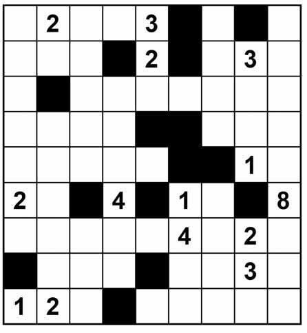Insérez les chiffres manquants dans n’importe quel ordre. Chaque colonne horizontale ou verticale correspond à une série de chiffres même dans le désordre. Une série de cases blanches, correspond à la série de chiffres. Exemple:unesérie de2cases,leschiffres seront1,2.Unesérie de3 casesleschiffres seront1,2,3.etc.
