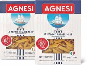 PâtesalimentairesAgnesi Pennerigate,SpaghettiouFusilli, enemballagesmultiples,p.ex.pennerigate, 2x500g, 2.50 aulieude5.–,(100g=0.25)