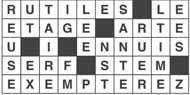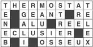 Remplissez cette grille en y incorporant les mots de la liste ci-dessous : ÉGALITAIRE - EXEMPTEREZ - STRESSANTE - TENEBREUSE - THERMOSTATÉCLUSIER - MAUSOLEE - TÉLEXÉES - RUTILES - ENNUIS - OSSEUX - ULTIMEÉTAGE - GÉANT - ARTE - RÉEL - RELU - RUER - SERF - STEM - ALU - ARE - ÈREISE - NST - EX - FM - IG - LE - ON - RÉ - UT