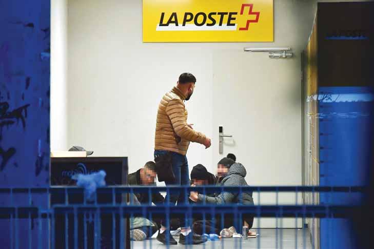 faire. Des groupes d’hommes dorment à même le sol, hurlent, mangent, boivent et jouent aux cartes. J’ai interpellé un policier municipal pour lui faire part de cette situation, il m’a répondu que la police n’intervient pas dans un local privé si le propriétaire n’en fait pas la demande. Quant à la Poste, elle m’a dit de prendre contact avec son service client à Berne. En gros, tout le monde s’en moque!»