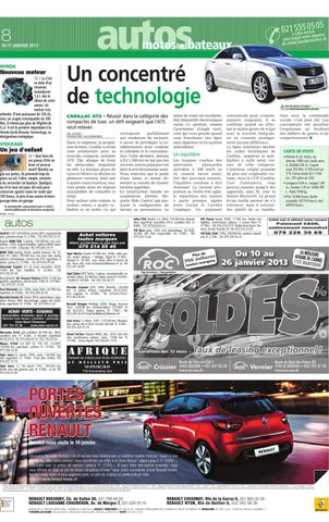 Découvrez Nouvelle Renault Clio et laissez-vous séduire par ce sublime modèle français. Quant à nos conditions, elles vous raviront! Vous bénéficiez en effet d’un Euro Bonus 1 allant jusqu’à Fr. 9 000.–, cumulable avec la prime de reprise 2 jusqu’à Fr. 2 000.–. Et pour fêter nos portes ouvertes, nous vous offrons en plus un jeu de roues complètes d’hiver 3 pour toute commande d’une Renault neuve. Rendez-nous visite et vous gagnerez avec un peu de chance un week-end de rêve. Infos sur www.renault-leman.ch Offres réservées aux clients particuliers sur les véhicules particuliers dans le réseau Renault participant jusqu’au 31.01.13. 1 Euro Bonus: Nouvelle Clio Fr. 2 000.–, Twingo/Clio III Collection/Kangoo VP Fr. 3 000.–, Megane/Scenic/Grand Scenic/Laguna/Latitude Fr. 5 000.–, Koleos Fr. 7 000.–, Espace/Master VP/Trafic VP Fr. 9 000.–. Exemple de calcul Euro Bonus: Nouvelle Clio Expression 1.2 75, prix catalogue Fr. 18 500.– moins Euro Bonus Fr. 2 000.– = Fr. 16 500.–. 2 La prime de reprise de Fr. 2 000.– (non valable pour Nouvelle Clio, Clio III Collection et Wind) est valable pour toute reprise d’un véhicule à l’achat d’un nouveau modèle Renault. L’achat ne peut être effectué que par la même personne que celle indiquée sur le permis de circulation de l’ancien véhicule. L’ancien véhicule, qui sera échangé contres un nouveau modèle Renault, doit être immatriculé depuis au moins 3 mois et encore en état de rouler. 3 Un jeu de roues complètes d’hiver est offert à l’achat de tout véhicule Renault neuf d’ici fin janvier 2013.