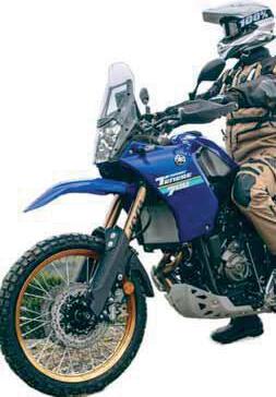 que la plus intense des aventures dans un désert inhospitalier. La nouvelle Yamaha TÉNÉRÉ 700 EXTREME combine un châssis léger et un moteur compact doté d’un couple élevé. L’accent est mis sur la robustesse pour convenir aux amateurs de parcours accidentés, comme aux motards à la recherche d’une machine polyvalente. L’ensemble des composants, du bicylindre à la fourche, a été adapté pour rester fidèle à la légende. Pour une telle moto, aux capacités incroyables, la légèreté et un moteur prêt à tout démontrent un savoir-faire issu d’une longue expérience. Cette moto douée pour l’exploration, paraît, au premier abord, trop haute! Une fois installé, on s’aperçoit que c’est un atout. Dans le terrain, elle manifeste un équilibre rassurant. Ses pneus au grip fait pour l’aventure ne dérangent pas sur le bitume. RE www.yamaha-motor.eu/ch/fr