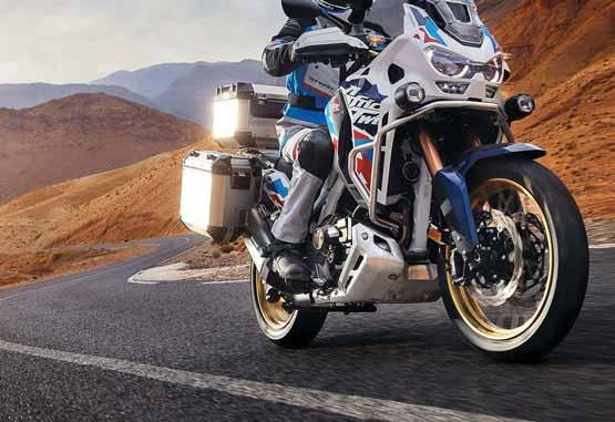 HONDA • La hauteur de siège a été abaissée, les suspensions électroniques gèrent le confort en permanence, le grand réservoir rassure: la nouvelle Honda Africa Twin Adventure Sports ne demande qu’à vous accueillir pour une journée entière. Le nouveau carénage ajoute une protection efficace contre le vent. Munissez-la de valises conçues pour elles et votre aventure durera. Elle a des capacités indéniables pour affronter tous les terrains, des chemins de campagne civilisés aux étendues désertiques hostiles. Au premier abord, sa taille en jette! Puis il convient de la découvrir. Vous mettez les valises, hop, une pression sur un bouton et les suspensions s’assouplissent. A deux en selle? Même chose. Le trajet choisi est en terre? La machine s’adapte si bien qu’on dirait qu’elle anticipe. Le compteur indiquait 450 km, une belle virée, eh bien elle ne s’est pas fait sentir. Un trail d’exception, sûr, agréable, stable. RE www.fr.honda.ch