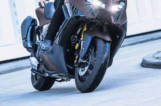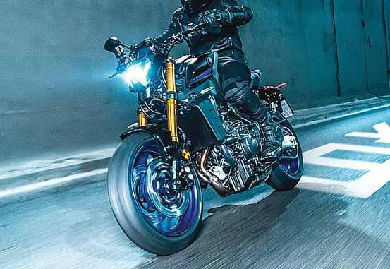 YAMAHA • L’ultime Hyper-Naked de Yamaha, la MT-09 SP, revient sur le devant de la scène. Son 3 cylindres est passé dans les mains des experts pour accroître son couple à bas et moyen régime. Le résultat apparaît dans toutes les reprises et procure des sensations fortes. L’équilibre devient plus facile grâce aux capteurs et aux interventions tenant compte de l’inclinaison de la machine. Cela augmente la sécurité et autorise des expériences où les limites reculent en même temps que le plaisir augmente. Les suspensions signées Öhlins changent nettement la donne en utilisation sportive. Un ensemble aussi homogène incite à prendre la route… et à ne pas vouloir la rendre! Très puissante, elle se montre fluide à manier, cette évolution paraît aboutie. Pour l’avoir entraînée (à moins que ce soit elle qui l’ait inspiré) sur des routes de montagne, nous avons pu juger de ses qualités, avec une mention pour le fameux trois