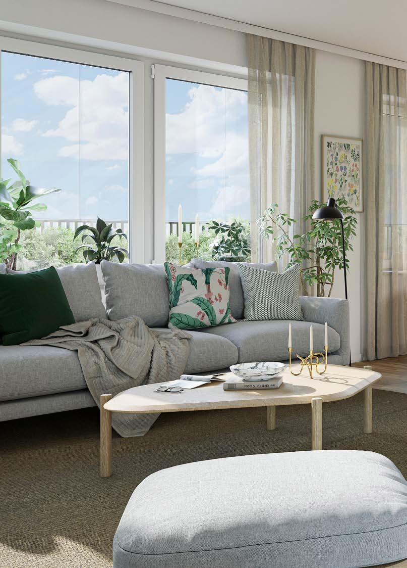 Bostäderna i Bonum Brf Korkeken kännetecknas av ljusa och genomtänkta planlösningar med generösa inglasade balkonger och stilren inredning.