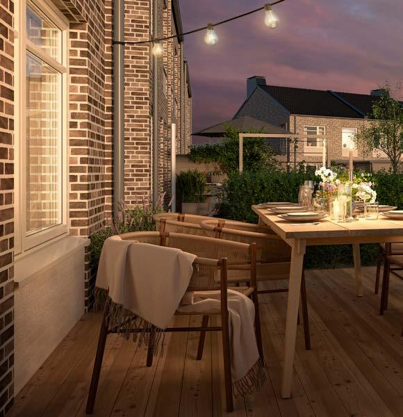 I Äppellunden skapar vi rum för vardagslivet, helgerna och all tid däremellan. Du får en bostad med hög kvalitet på inredning, uteplatser och mysig trädgårdstäppa. Utemiljön är förberedd och klar när du flyttar in. Det är bara att puffa upp kuddarna i utemöblerna, rulla fram grillen och fundera på vad det ska bli till middag.